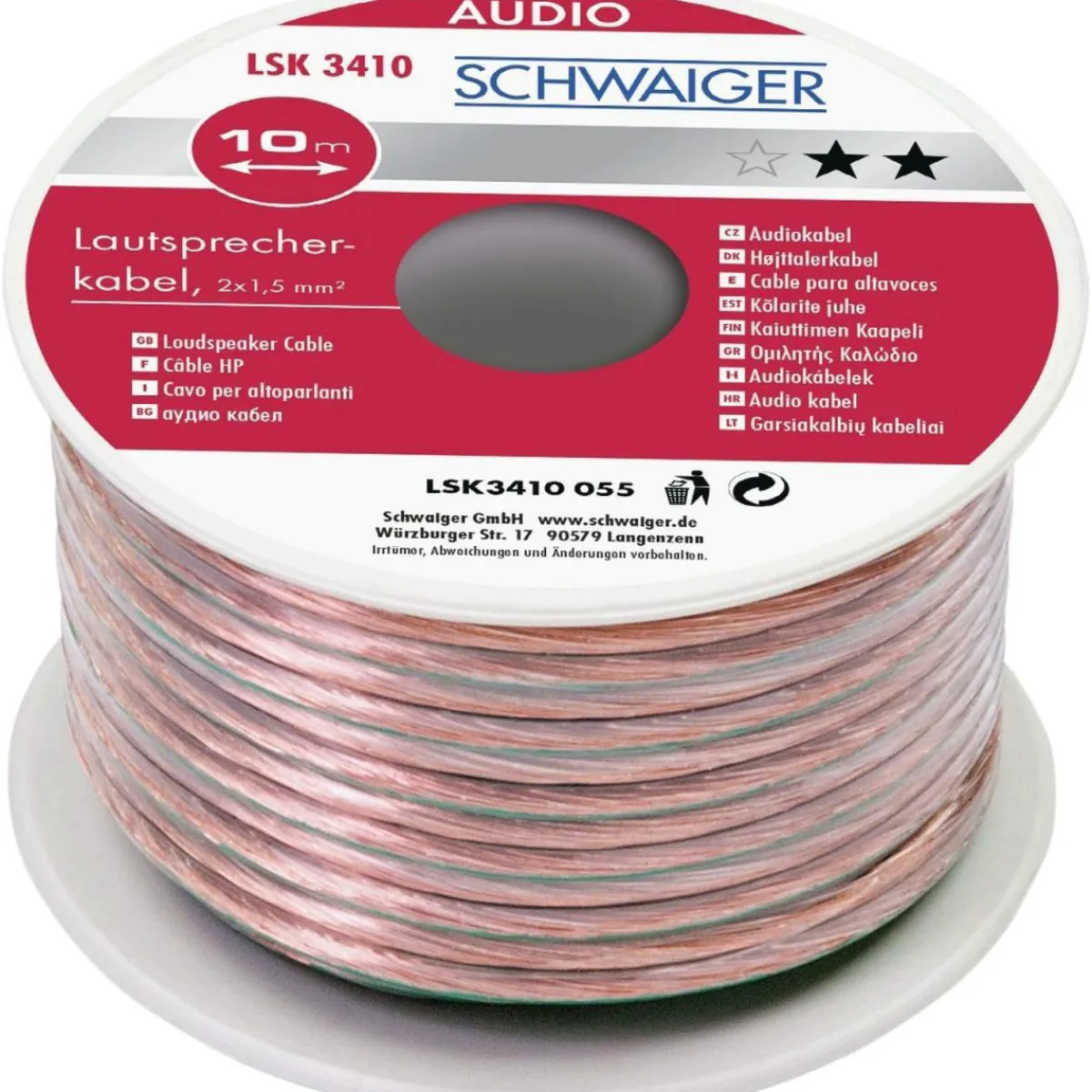 Mit dem Schwaiger Audio-Lautsprecherkabel erhalten Sie ein hochwertiges Kabel, das dank seiner Plus-/Minuspol-Kennzeichnung einfach zu installieren ist. Der robuste Außenmantel sorgt zudem dafür, dass das Kabel lange Zeit hält und flexibel einsetzbar ist. Ob im Heimkinobereich oder bei Musikveranstaltungen – dieses Kabel wird Ihnen stets beste Klangergebnisse liefern.