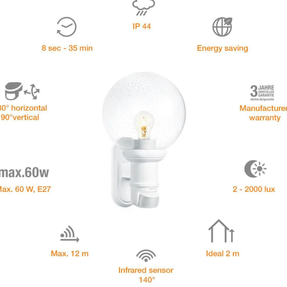 - Ausstattung: Passiv-Infrarot-Sensor mit Dämmerungsfunktion