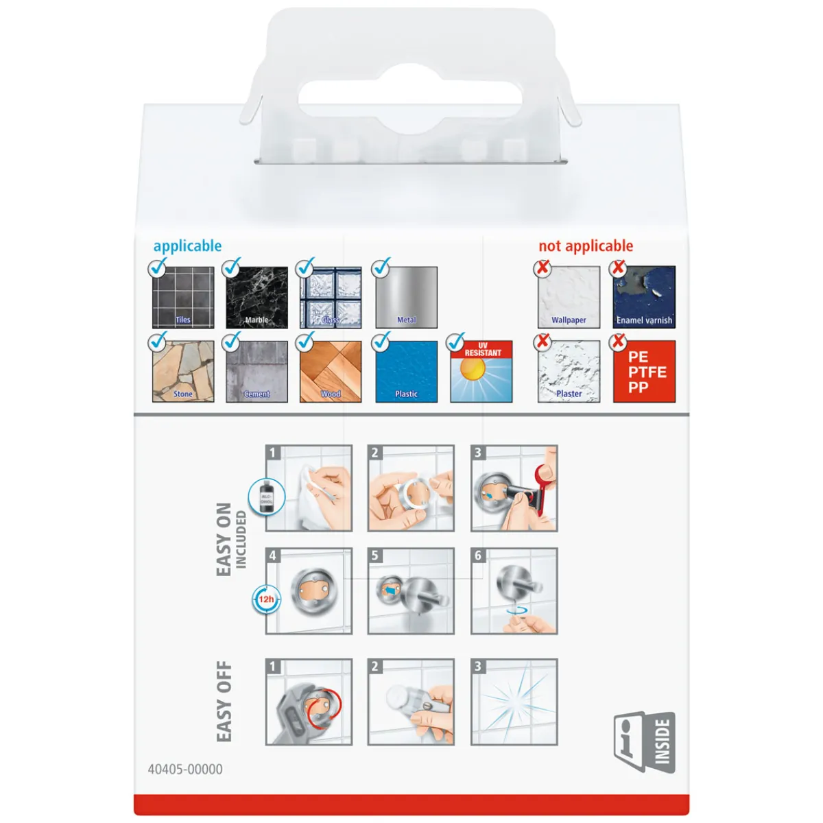 - Hält auf fast allen Untergründen wie Fliesen oder Glas; nicht geeignet für Putz oder Tapeten.