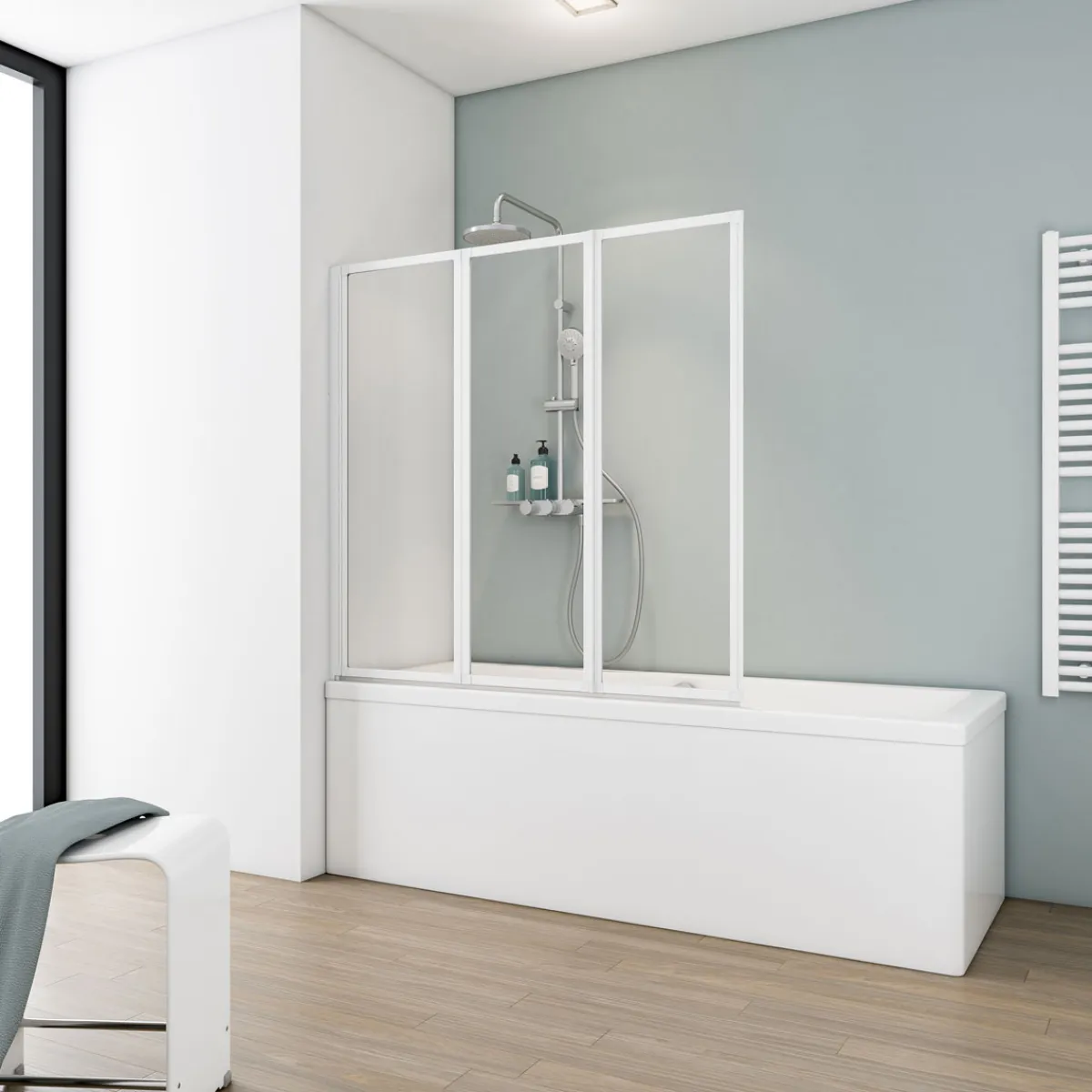 Schulte Badewannenfaltwand Alu Natur – Platzsparende Duschlösung für mehr Komfort im Badezimmer