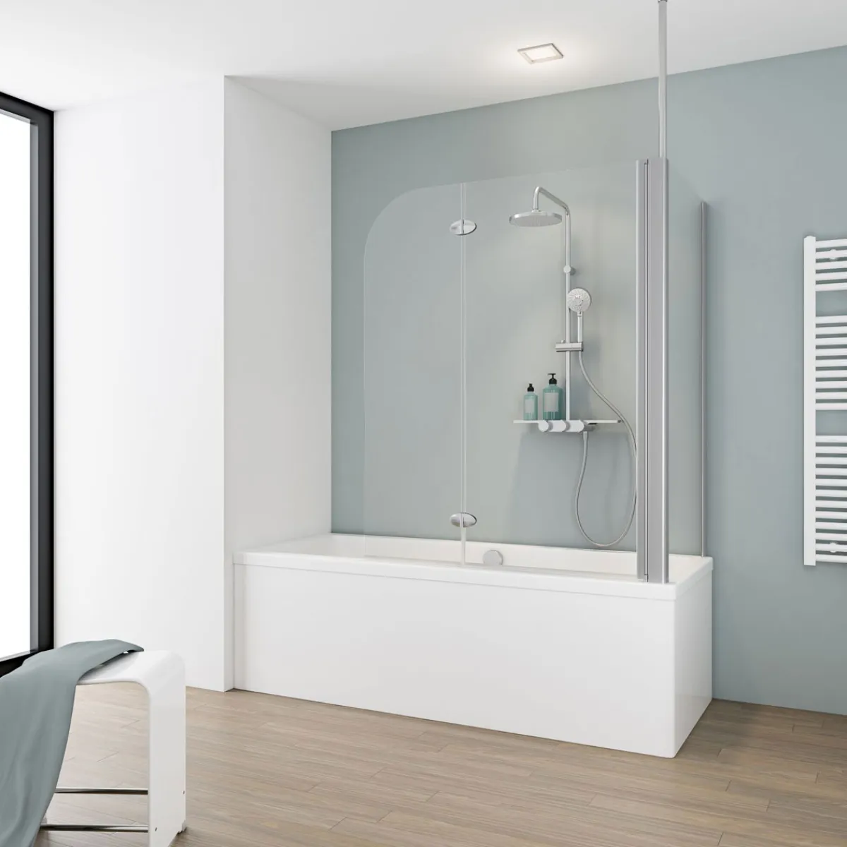 Schulte Badewannenfaltwand Komfort inkl. Seitenwand grau – Platzsparende Lösung für Ihr Badezimmer