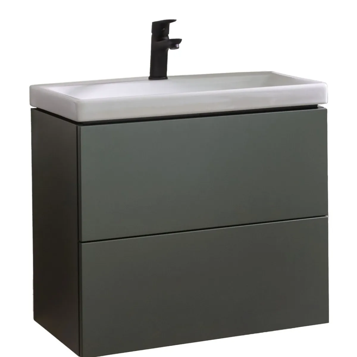 BADMOBIL Waschtischunterschrank CRAFT 63 x 54 x 36 cm 2 Schubladen mit Push-To-Open grün-matt