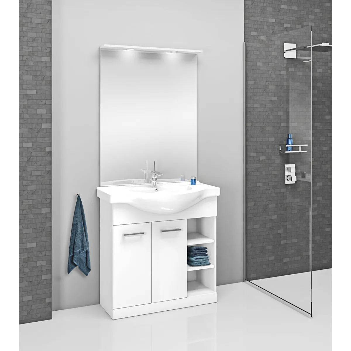 - – Inklusive Waschbecken aus Keramik mit den Maßen (BxHxT cm): 86x189x51