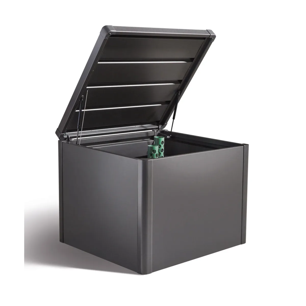 - Ausstattung: Belüftungssystem, integrierter Nagerschutz, leicht zu öffnende Vorderwand, Deckelöffnung mit Gasdruckfeder