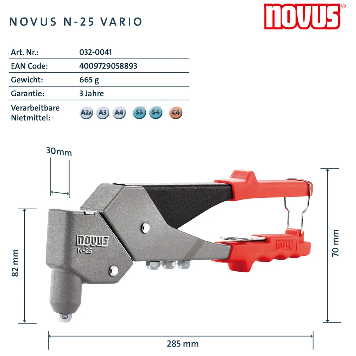 Novus Blindnietzange N-25 vario – Die perfekte Lösung für Verbindungen und Befestigungen