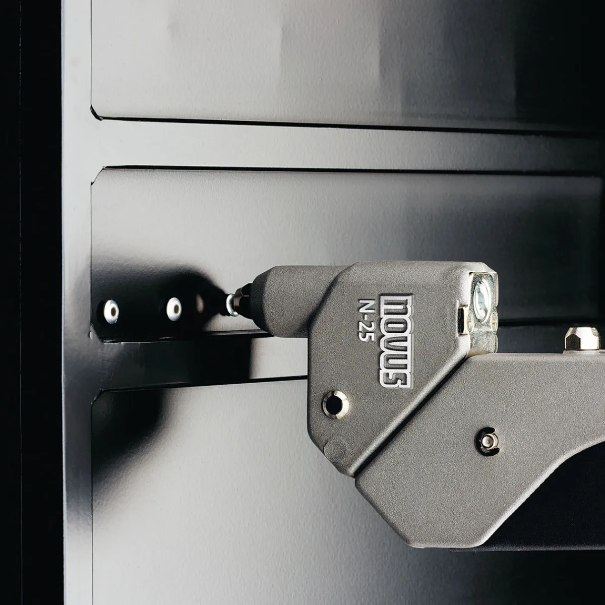 Die Novus Blindnietzange N-25 vario bietet eine Vielzahl an Extras wie Griffverriegelung oder integrierter Montageschlüssel sowie eine einfache Bedienbarkeit mit nur einer Hand. Durch ihre hohe Flexibilität in Bezug auf das verwendete Material sowie den Einsatzbereich ist sie ein unentbehrliches Werkzeug bei allen Arbeiten rund ums Haus oder auf der Baustelle. Überzeugen Sie sich selbst von ihrer Leistungsfähigkeit!