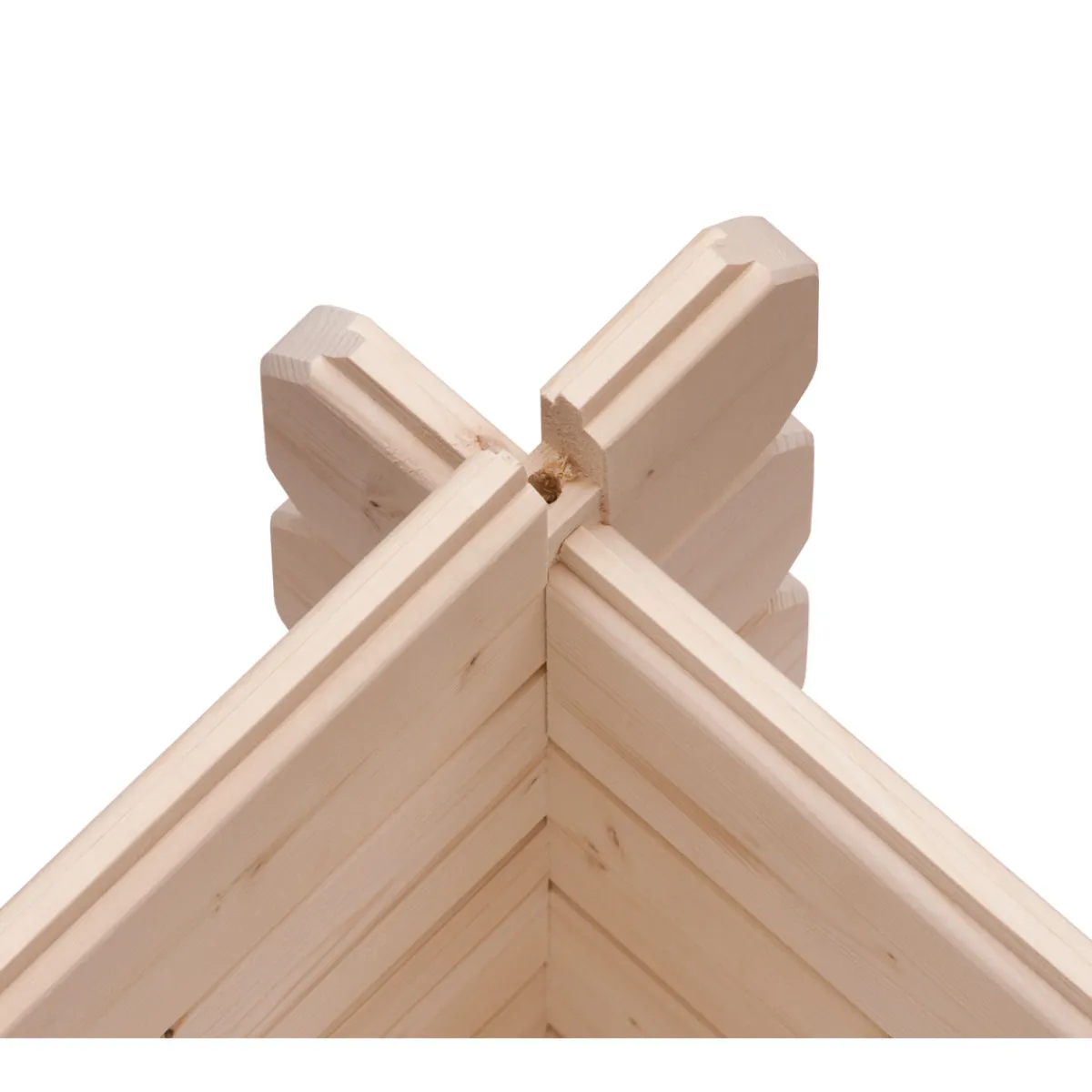 Das Blockbohlenhaus wird aus 28 mm starken Wandbohlen aus nordischer Fichte in klassischer Bockbohlenbauweise gefertigt und gewährleistet somit einen einfachen Aufbau und eine sehr stabile Konstruktion. Bei dieser Bauweise werden die Wandbohlen reihum aufgestapelt, beginnend mit einer halben Bohle für eine glatte und stabile Auflage, und dann miteinander verschraubt. Unsere patentierte 6-Plus-Eckverbindung ermöglicht eine sehr hohe Regen- und Winddichte. Die in den Eckverbindungen sitzenden Vorbohrungen für die Verschraubung der Blockbohlen sind werkseitig vorgefertigt und verkürzen die Dauer der Montage enorm. Das Pultdach besteht aus Massivholzdach. Der vordere Dachüberstand von 280 mm schützt den Eingangsbereich darüber hinaus wirkungsvoll. Die Grundfläche beträgt 7,84 m² bei einem umbauten Raum von 16,5 m³. Mit einer Seitenhöhe von 201 cm und einer Firsthöhe von 222 cm bietet das Gerätehaus optimale Raumnutzung. Das Gartenhaus ohne Anbauten hat ein Sockelmaß von 280×280 cm. Bei den Blockbohlenhäusern kommt hierzu noch das Maß der überstehenden Blockbohlenköpfe. Bodenbalken sorgen für den Schutz von unten und werden unter das Gartenhaus gelegt. Durch die Kesseldruckimprägnierung der Bodenbalken sind diese vor Witterungseinflüssen und holzzersetzenden Pilzen bereits geschützt. Die praktische und vormontierte Tür sorgt mit Ihren großzügigen Abmessungen und dem Massivholzrahmen für einen einfachen Zutritt in das Gartenhaus und sichert den Inhalt nebenbei effektiv vor unbefugtem Zugriff. Die Verglasung der Lichtausschnitte sorgt für großzügigen Tageslichteinfall.