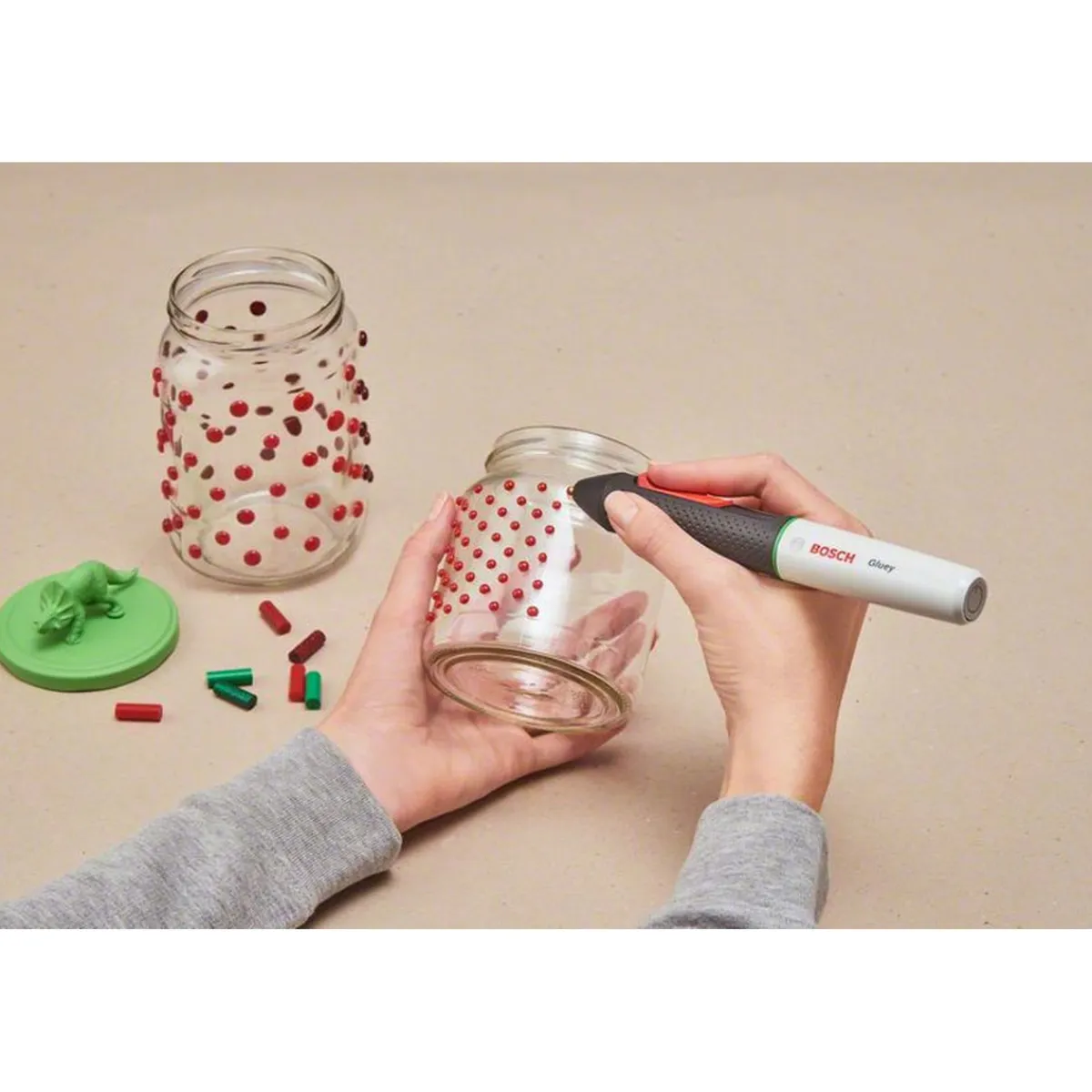 Mit dem Bosch Heißklebestift Gluey wird das Basteln zum Kinderspiel. In nur einer Minute aufgeheizt, ist er der perfekte Helfer für alle kreativen Projekte. Der Softgrip-Besatz sorgt dabei für eine angenehme Handhabung.
