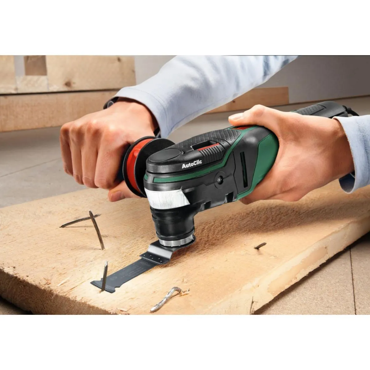 Das Bosch Multifunktionswerkzeug PMF 350 CES ist ein wahres Allround-Talent und eignet sich perfekt für alle Arbeiten rund ums Haus. Mit einer Leistungsaufnahme von 350 W und einer Leerlaufdrehzahl von 15.000 bis 20.000 U/min ist es ideal zum Trennen, Sägen, Schleifen und Schaben geeignet. Das Gerät verfügt über zahlreiche Funktionen wie die stufenlose Drehzahlregulierung, das AutoClic System und die integrierte Staubabsaugung.