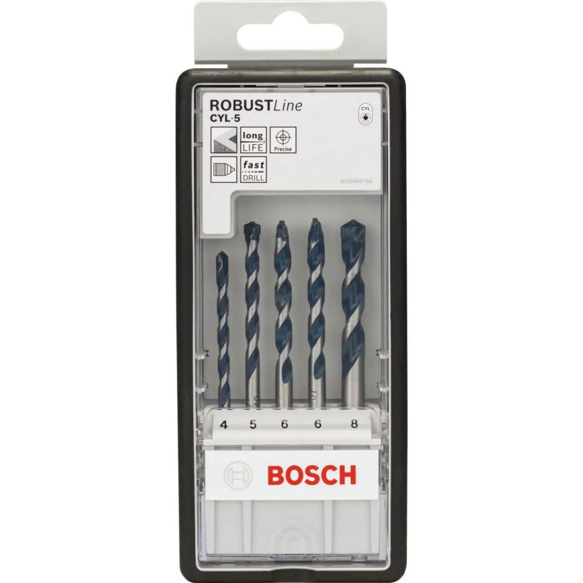 Mit dem Bosch Professional 5-teiligen CYL-5 Betonbohrer-Set Robust Line 4–8 mm bohren Sie mühelos in Beton, Kalksandstein, Naturstein, Sandstein, Kunststein und Granit. Die geschliffene Hartmetallspitze und die aktive Zentrierspitze sorgen für präzises und schnelles Bohren. Das Power-Grip-System ermöglicht eine optimale Kraftübertragung von der Maschine auf den Bohrer.