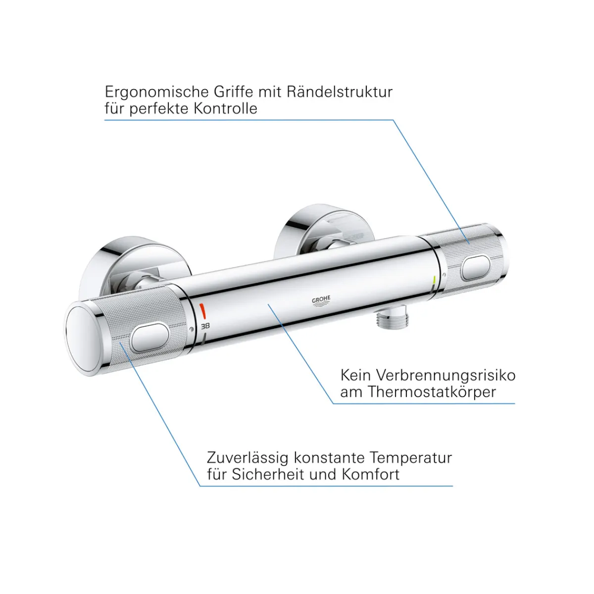 Mit dem Grohe Brausethermostat Precision Feel holen Sie sich nicht nur ein optisches Highlight ins Bad, sondern auch ein Produkt höchster Qualität. Die integrierte Sicherheitssperre bei 38°C sorgt dafür, dass Sie immer sicher duschen können. Dank des Wasserdurchflussbegrenzers sparen Sie zudem Wasser und schonen somit die Umwelt. Also worauf warten Sie noch? Bestellen Sie jetzt den Grohe Brausethermostat Precision Feel im Online-Shop!
