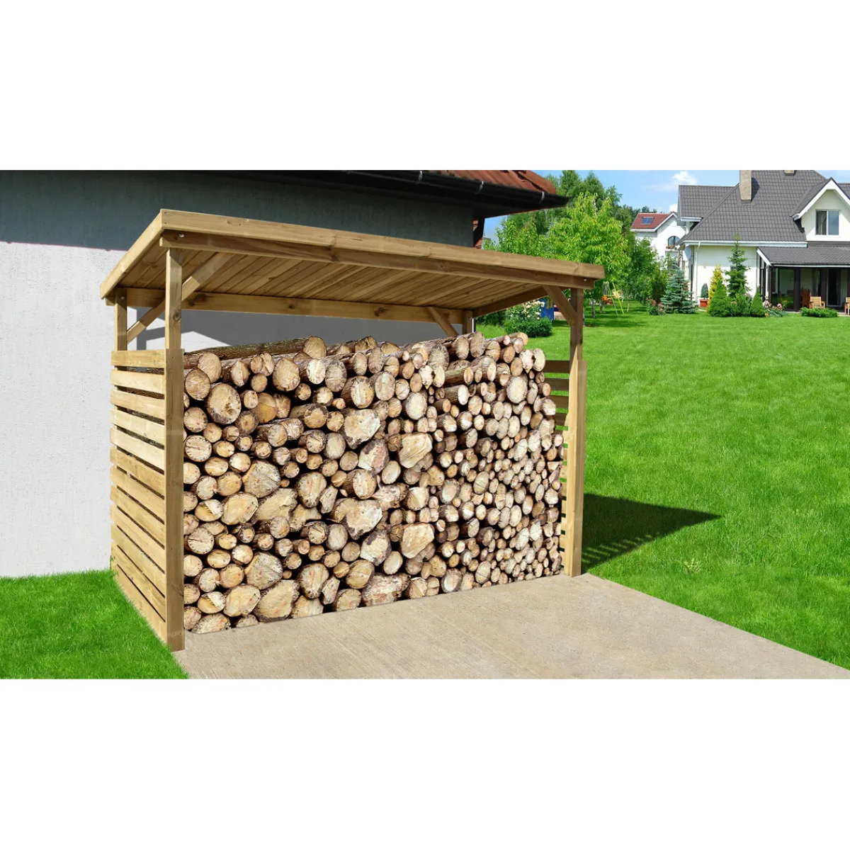 Das Brennholzlager ist eine hervorragende Wahl für alle Kunden, die ihr Kamin- oder Ofen-Holz sicher und trocken lagern möchten. Das hochwertige Kiefernholz sowie die Imprägnierung sorgen dafür, dass das Lager besonders langlebig ist. Mit einer Grundfläche von über drei Quadratmetern bietet es genug Platz für bis zu fünfeinhalb Kubikmeter Holzscheite.