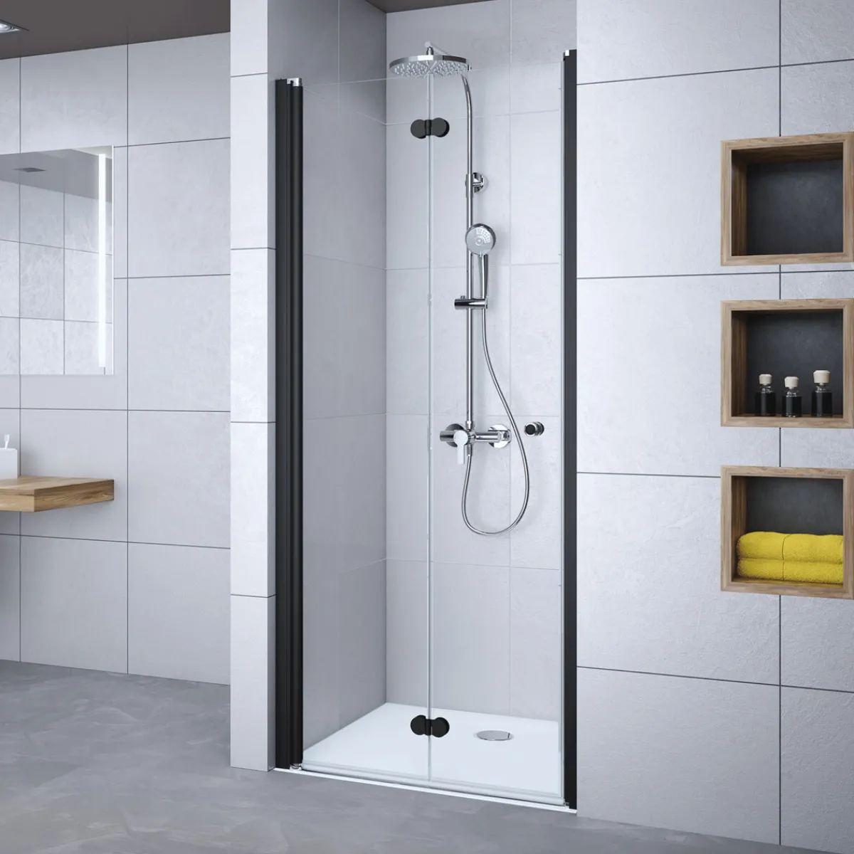 Mit der Breuer Drehfalttür Elana Komfort holen Sie sich eine hochwertige und praktische Lösung ins Bad. Die Türen lassen sich platzsparend öffnen und schließen dank des Pendelscharniers sanft. Besonders praktisch ist die Möglichkeit, die Türen nach innen oder außen zu öffnen – ideal für kleine Badezimmer. Der schwarze Matt-Look verleiht Ihrem Bad zudem einen modernen Touch.