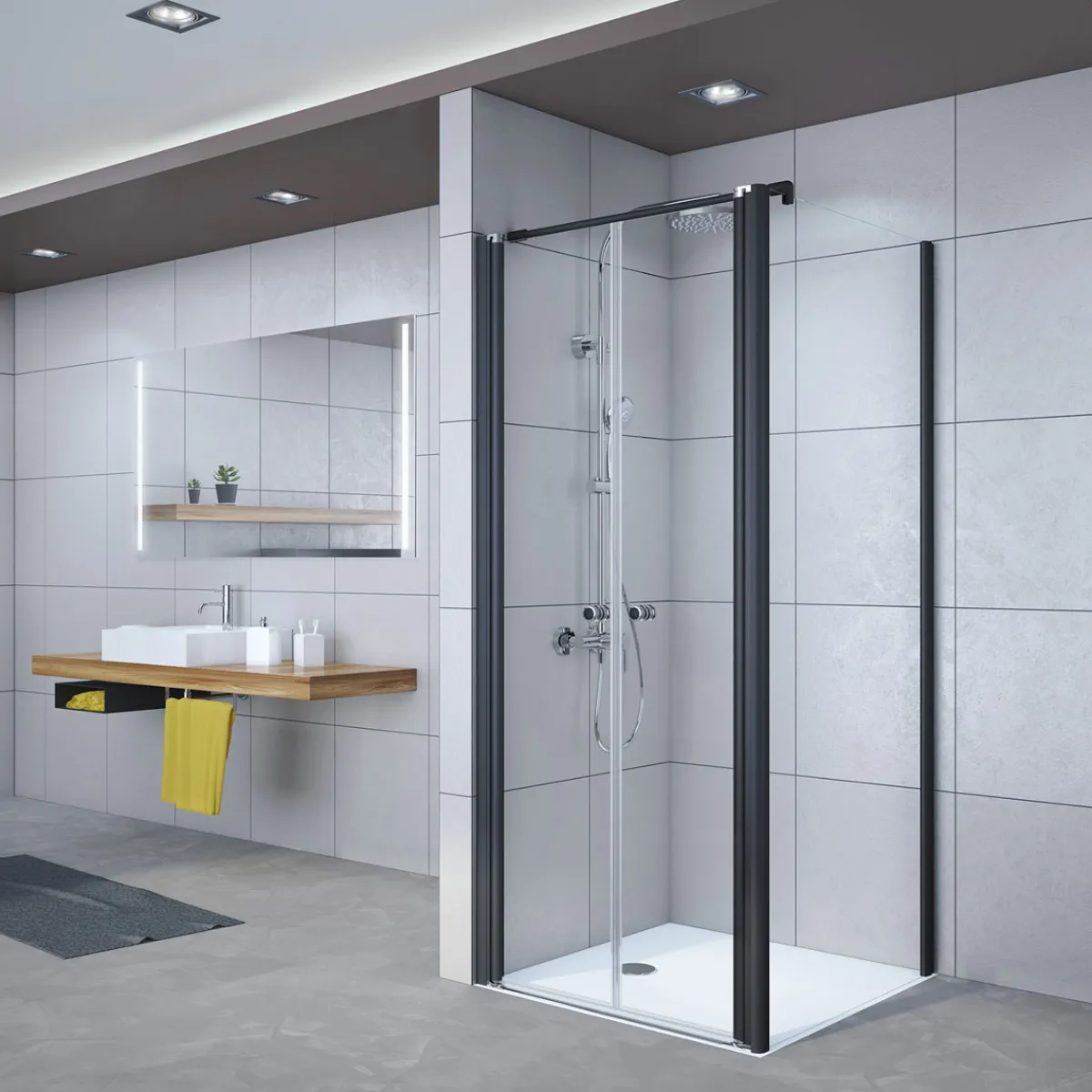 Breuer Pendeltür Elana 6 für Seitenwand schwarz matt satiniert 750 mm
