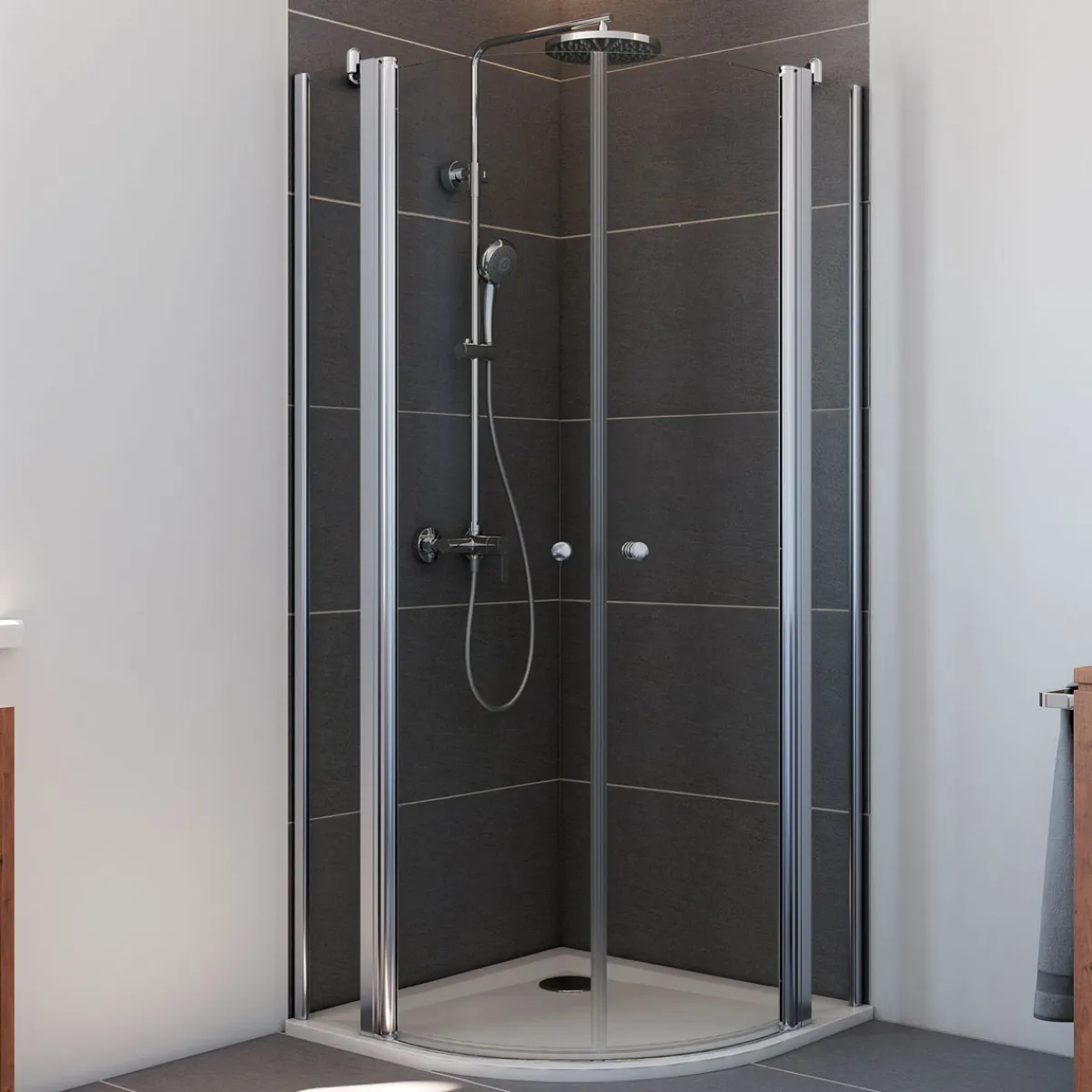 Breuer Runddusche 4-teilig Drehtür mit Festteilen, Radius 550, Alu silber matt, Klarglas, 1000 x 1000 mm