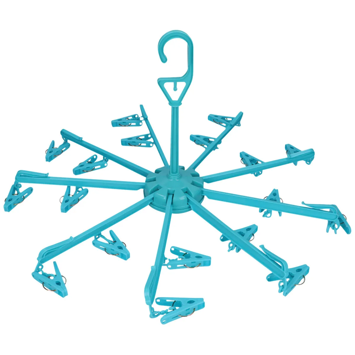 Mit dem Cartrend Trockenkarussell können Sie Ihre leichte Wäsche einfach und platzsparend aufhängen. Das Karussell ist zusammenfaltbar und lässt sich dadurch leicht verstauen. Es ist ideal zum Aufhängen im Zeltgestänge, an Ästen oder anderen Gegenständen.