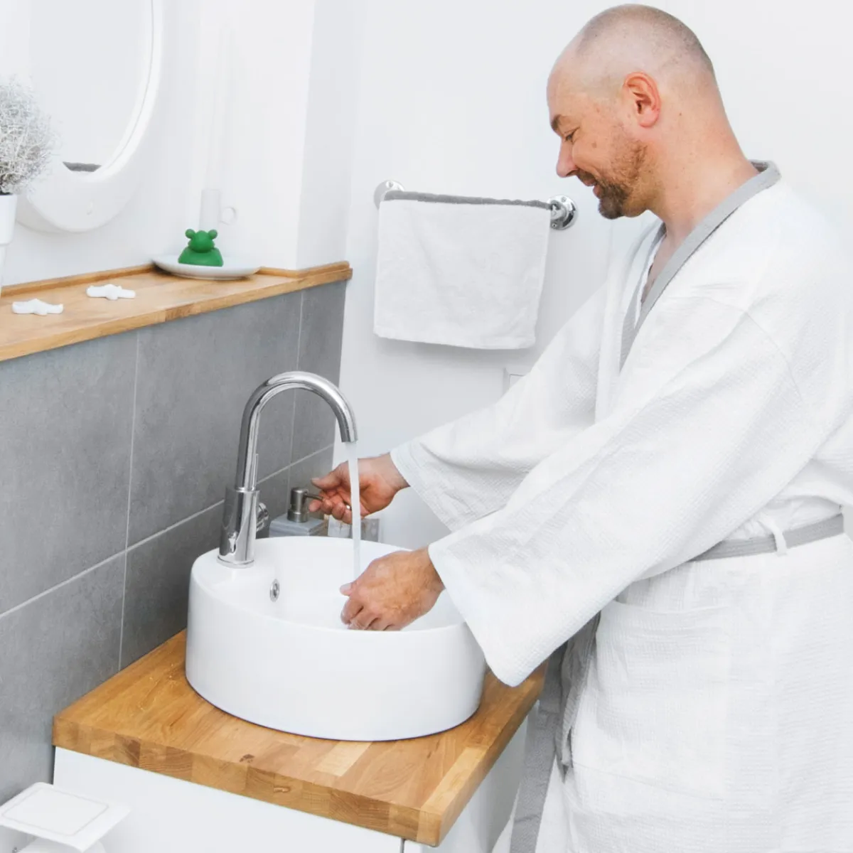 - Dank der runden Form fügt sich die Armatur harmonisch in jedes Badezimmer ein
