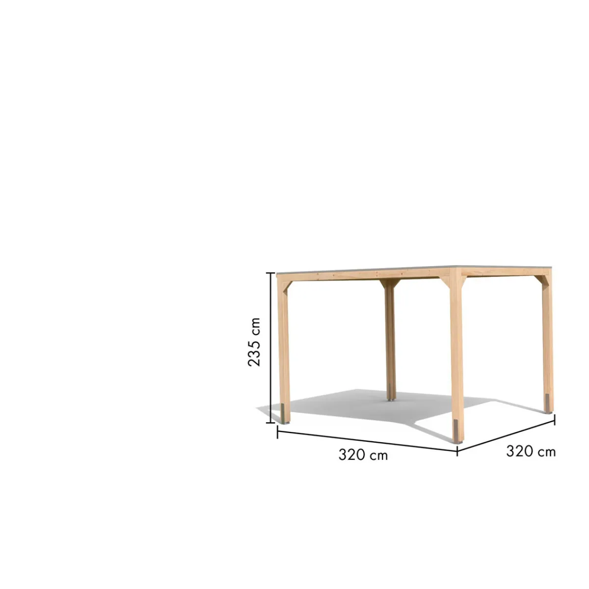 | Außenmaße (BxLxH=Trauf) (cm): | 320 x 320 x 239 |