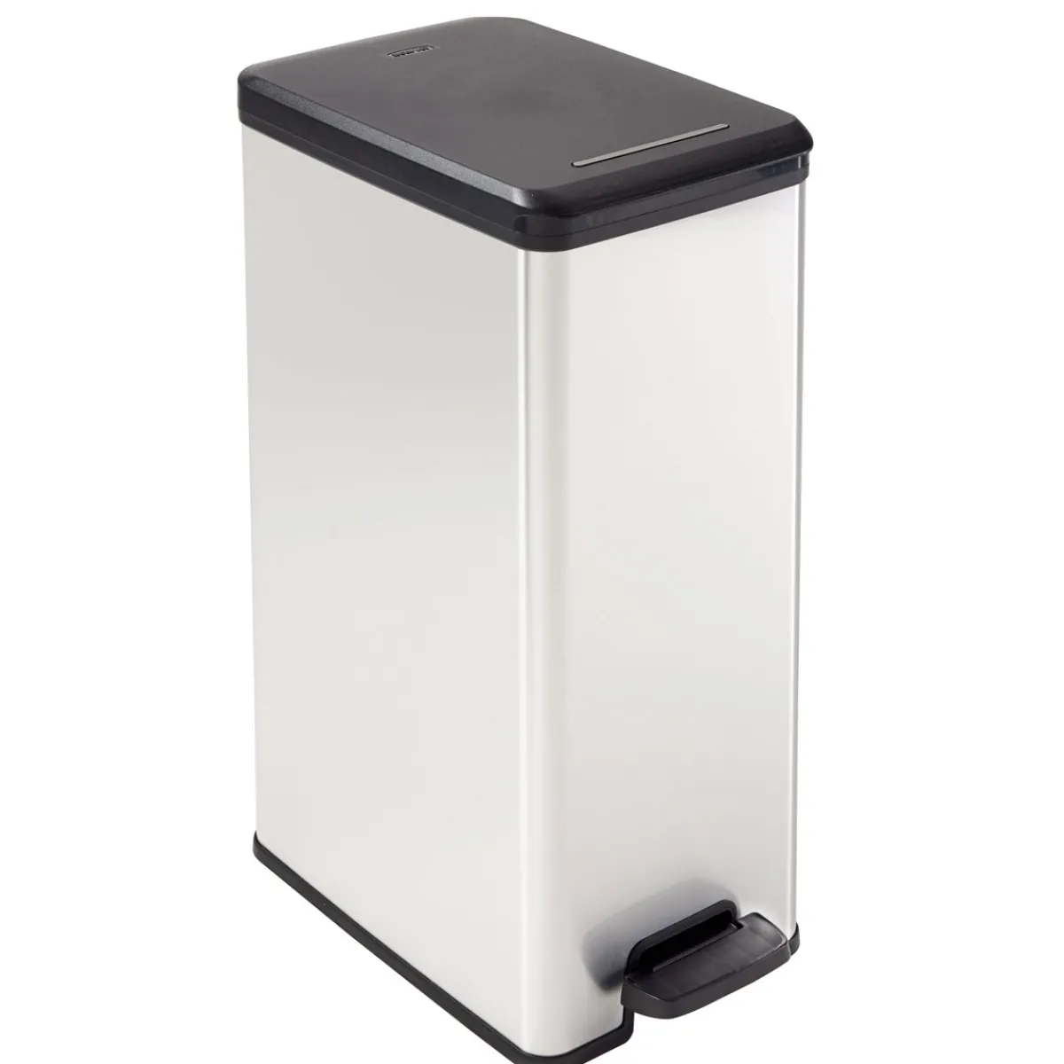 Curver Mülleimer DECO Bin SLIM 40L mit Pedal schwarz silber metallic