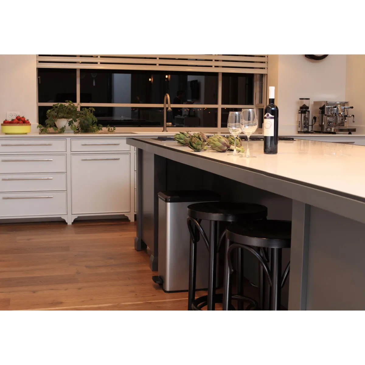 Elegant, modern und schlank – ein Supermodell der Deco Bin-Reihe! Dank seiner Form passt der 40 Liter Slim Bin-Abfalleimer leicht in enge Räume und kann in kleinen Haushalten eingesetzt werden. Alternativ können Sie drei Abfalleimer zusammenstellen, um ein großartiges Recyclingzentrum für die Küche oder den Abstellraum zu schaffen. Ein großes, komfortables Pedal und eine verdeckte Abfallbeutelhalterung machen die Benutzung zum Vergnügen. Wenn praktische Vorrichtungen so gut aussehen, warum nicht einen Hauch von Stil in Ihr Zuhause bringen!