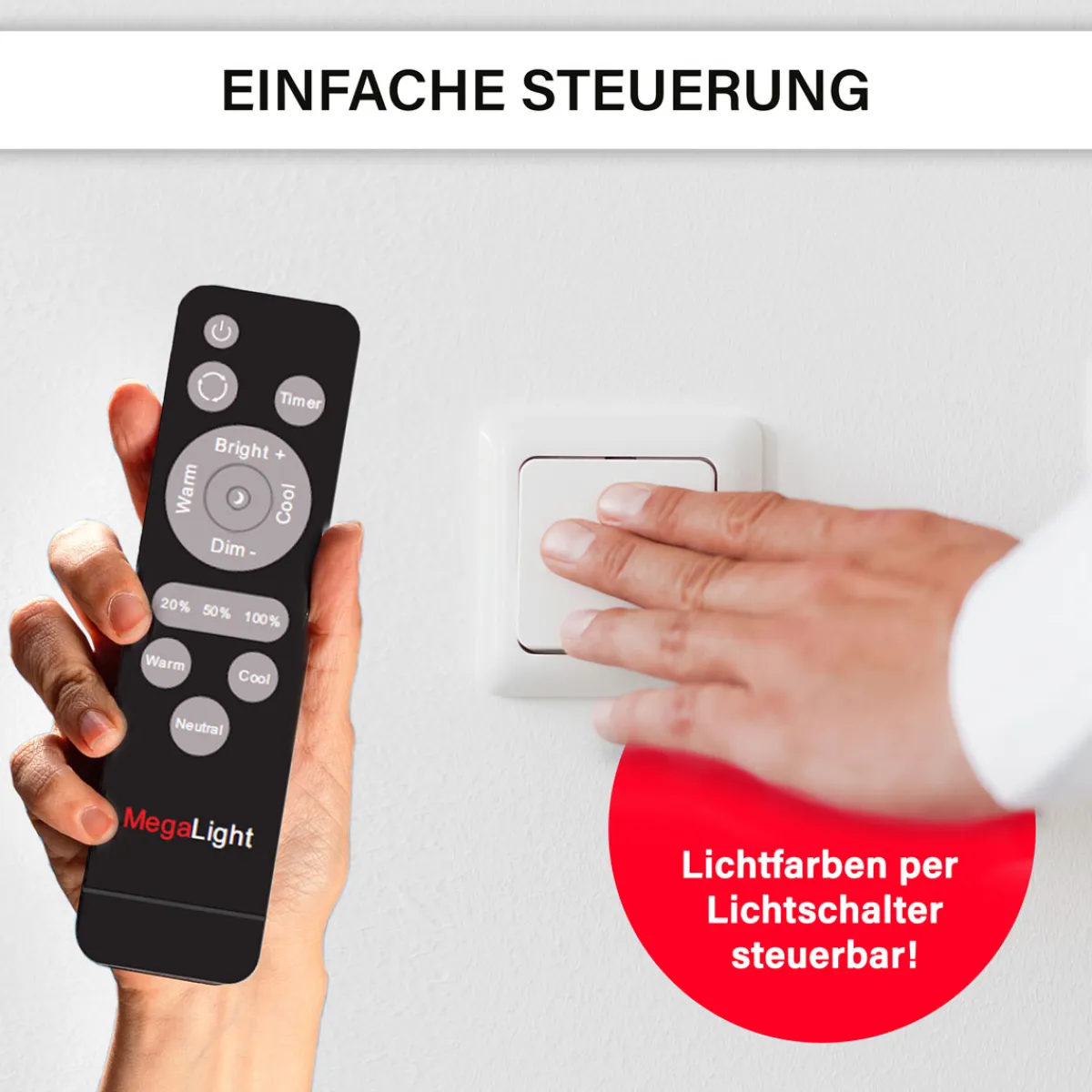 - Fernbedienung inklusive: Steuern Sie Lichtfarbe und Helligkeit bequem vom Sofa aus.