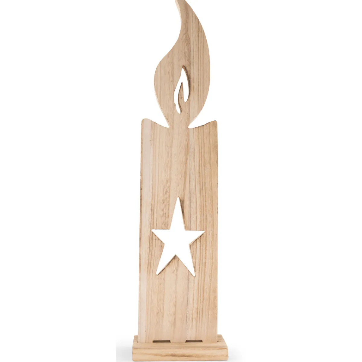 - Dekorative Kerzenform aus hochwertigem Naturholz gefertigt für eine besonders warme Ausstrahlung im Innenbereich
