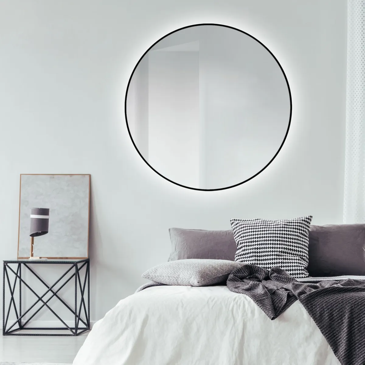 Erleben Sie mit dem exklusiven DSK Design LED Lichtspiegel Silver Globo Black Dm 120 cm ein neues Level an Eleganz und Funktionalität. Der hochwertige, mattschwarze Aluminiumrahmen umgibt einen silberbeschichteten Spiegel mit einem Durchmesser von 120 cm. Die innovative und energiesparende LED-Technik sorgt für eine gleichmäßige Beleuchtung des Raumes.