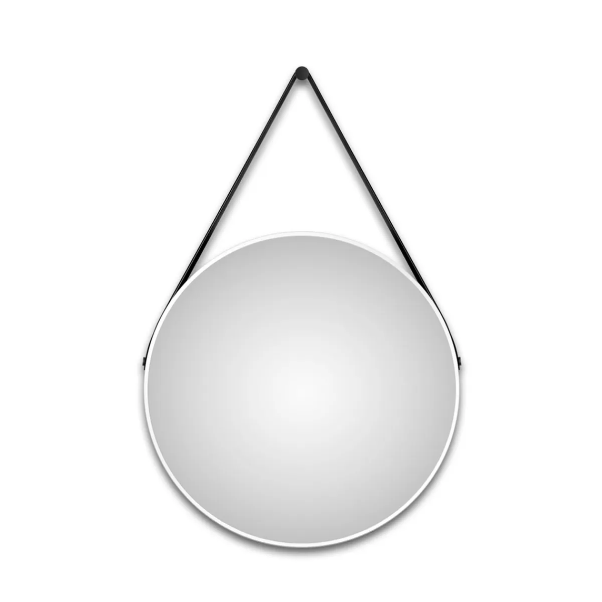 Verleihen Sie Ihrem Badezimmer mit dem exklusiven DSK Design Spiegel Silver Coiffeur White eine stilvolle Note. Der runde Spiegel mit einem Durchmesser von 80 cm besticht durch seinen hochwertigen, mattweißen Aluminiumrahmen und das dekorative Band in Lederoptik.