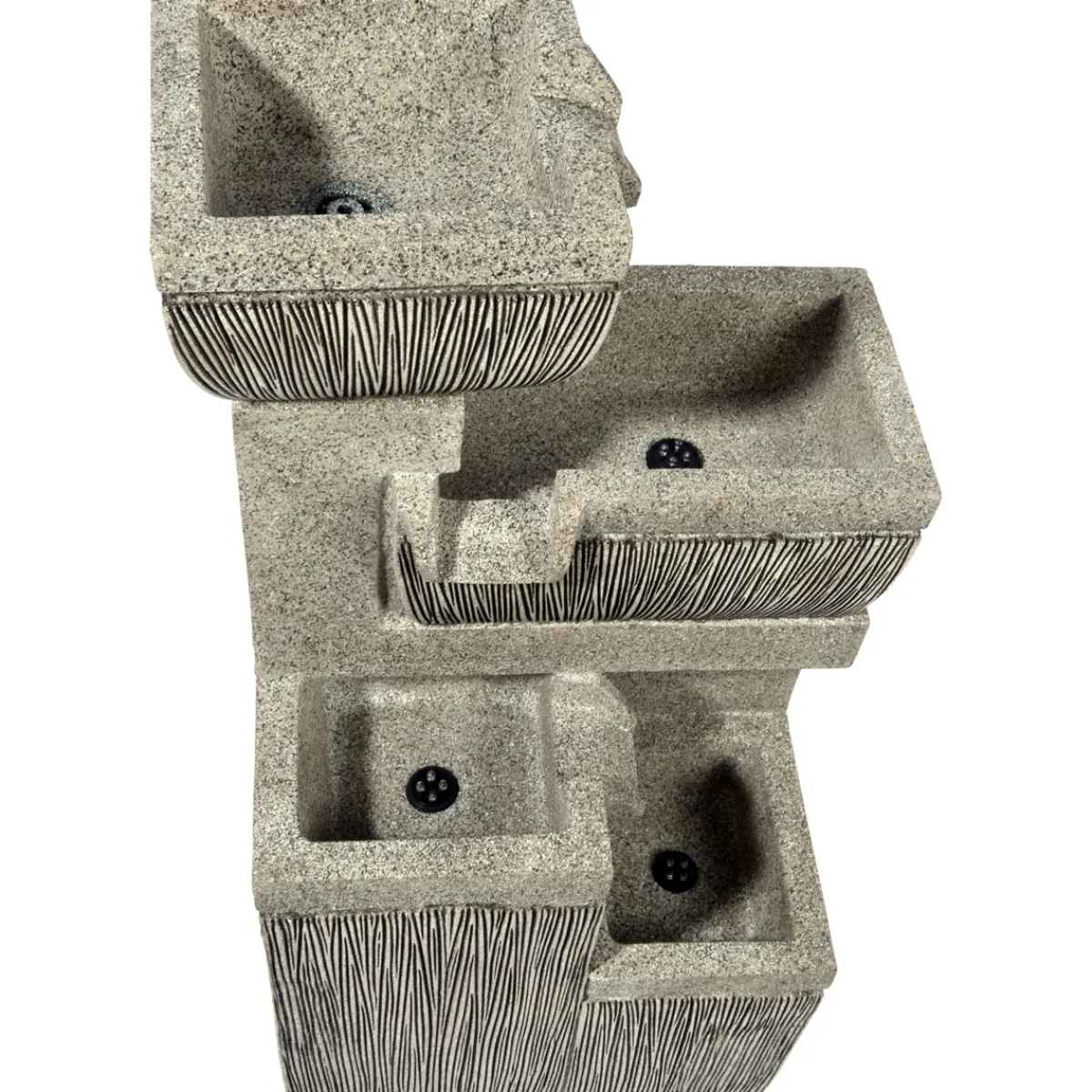 Worauf warten Sie noch? Der dobar XL Design-Gartenbrunnen bringt Stil, Ruhe und Ambiente direkt zu Ihnen nach Hause! Ob als Highlight im Garten oder als beruhigendes Element auf Ihrem Balkon – dieser Standbrunnen überzeugt durch seine hochwertige Verarbeitung aus Polyresin sowie durch seine stimmungsvolle LED-Beleuchtung. Lassen Sie sich vom sanften Plätschern des Wassers verzaubern und schaffen Sie Ihre persönliche Oase der Entspannung. Bestellen Sie jetzt Ihren neuen Lieblingsgarten-Brunnen bei !
