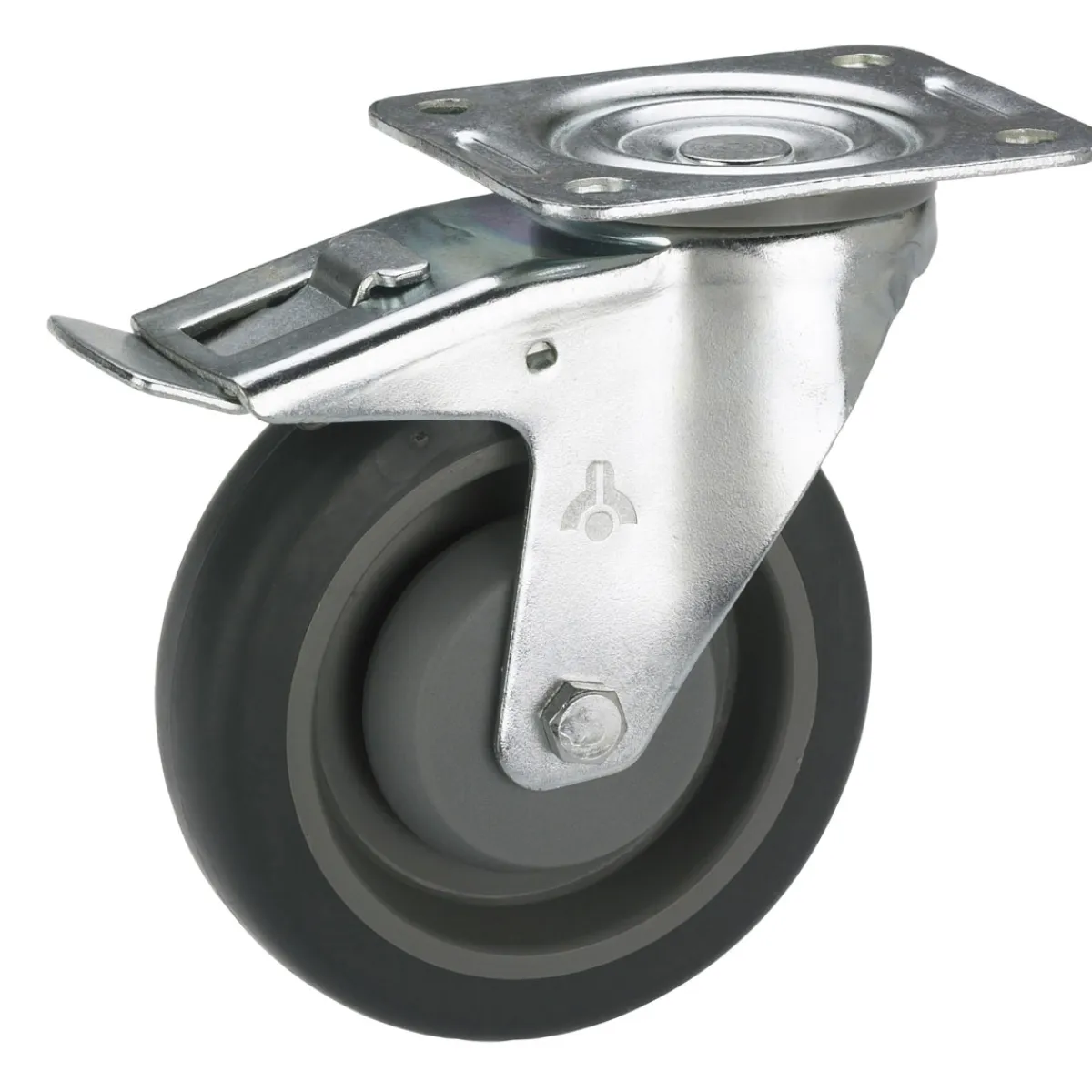 Dörner + Helmer Transportgeräte-Lenkrolle mit TPE-Lauffläche Fadenschutz und Totalfeststeller 100 x 32 mm