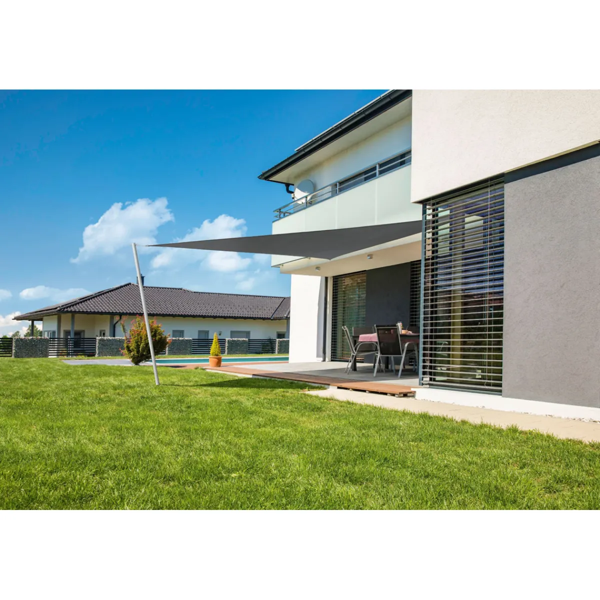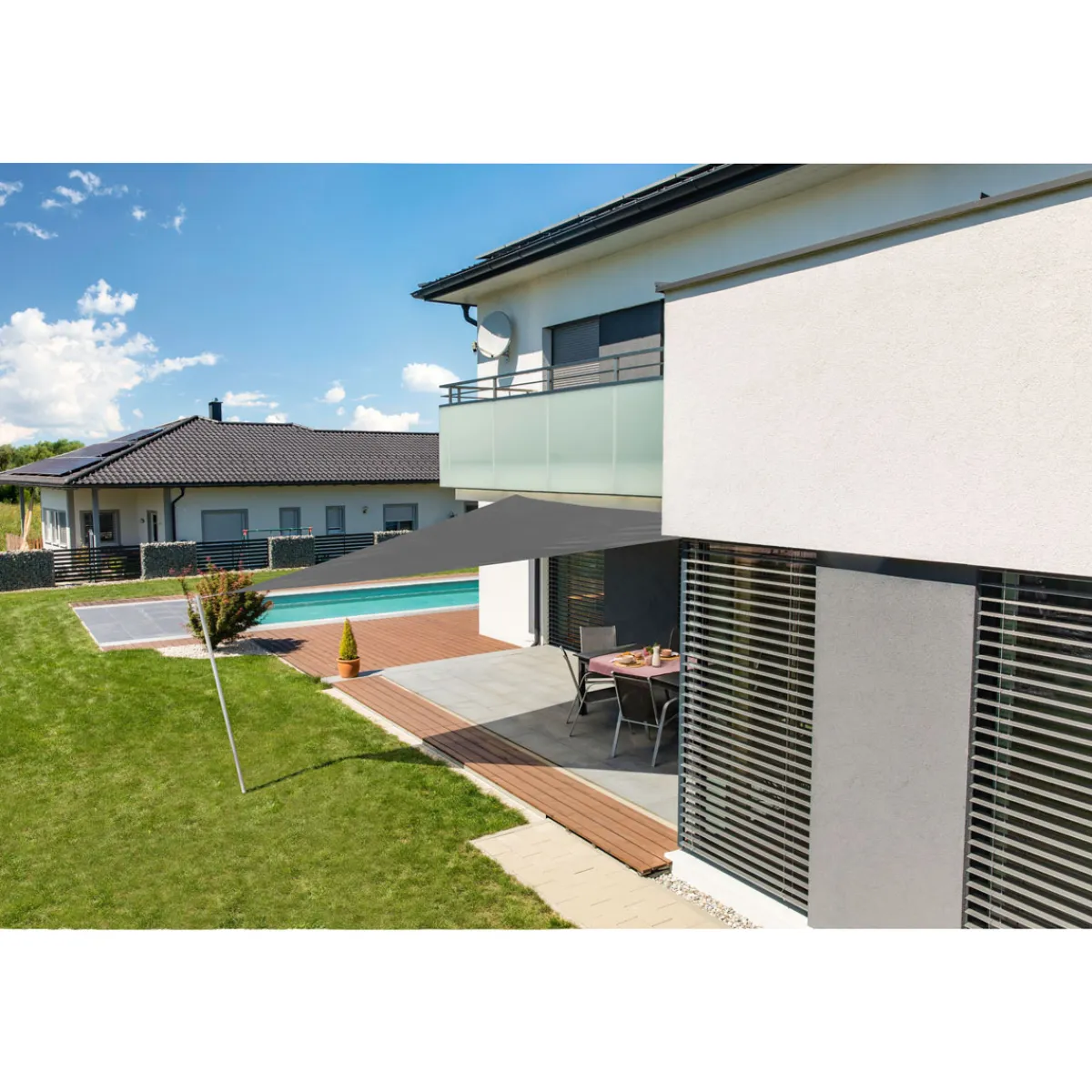 Das Sonnensegel ist ideal für alleKunden geeignet, die eine stilvolle Möglichkeit suchen, um sich vor der Sonne zu schützen. Ob auf dem Balkon oder im Garten – mit dem Dreieck-Segel können Sie jederzeit eine angenehme Atmosphäre schaffen.