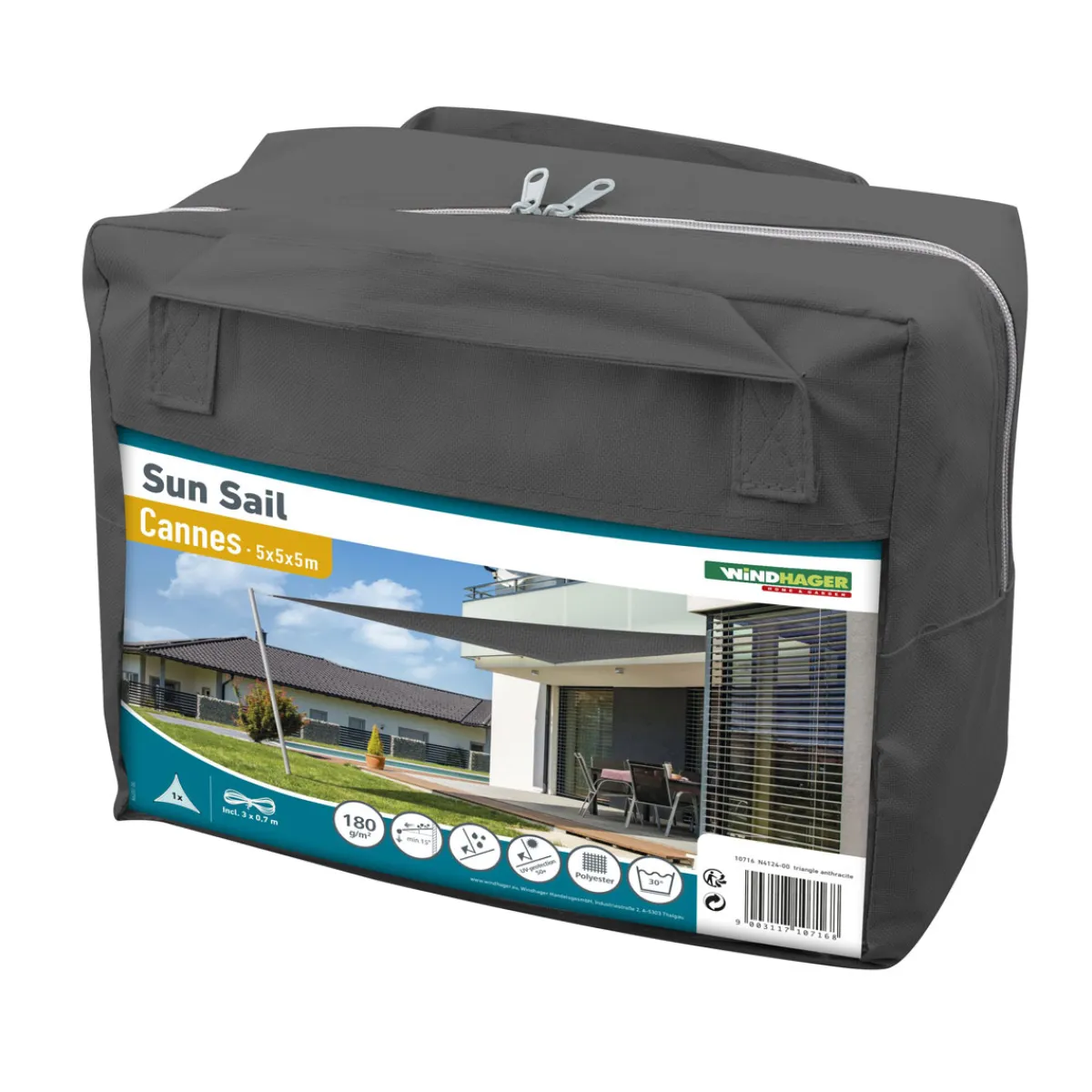 Das Dreieck-Segel Cannes ist ein hochwertiger Schattenspender für den Einsatz im Freien. Dank seiner robusten Beschaffenheit aus Polyester-Gewebe mit einer Grammatur von 180 g/m² bietet es nicht nur einen hervorragenden UV-Schutz von bis zu 50+, sondern ist auch reißfest und wasserabweisend. Der konkave Schnitt ermöglicht eine faltenfreie Spannung und der verstärkte Randsaum sorgt für festen Halt. Mit seinen Maßen von 5 x 5 x 5 m passt das Segel perfekt auf jeden Balkon oder in jeden Garten. Bestellen Sie jetzt das Dreieck-Segel Cannes in Anthrazit bei !