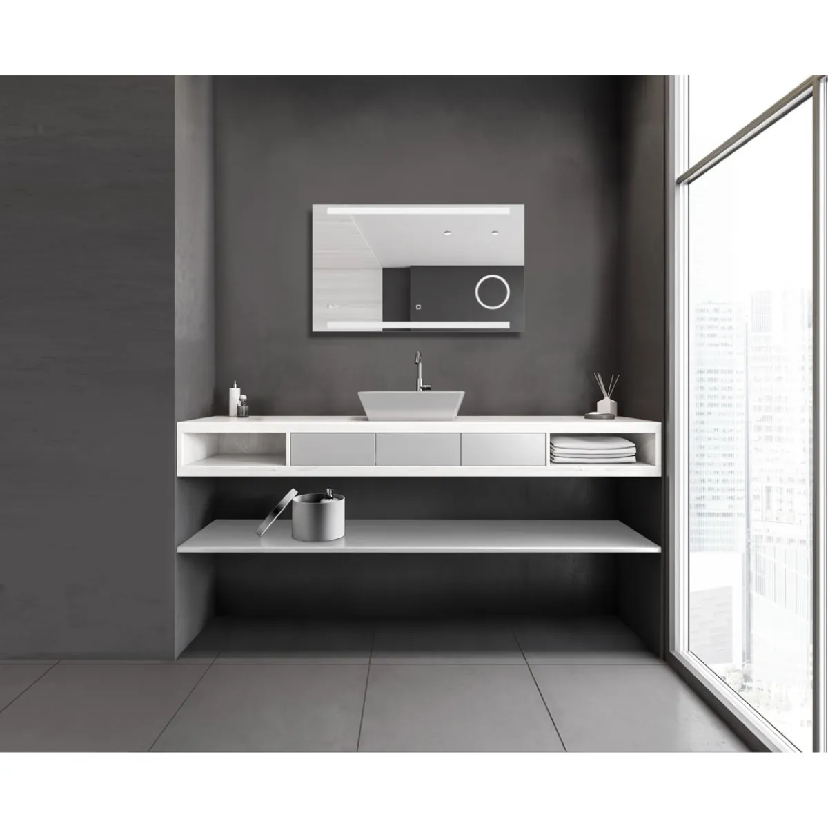 Mit dem DSK Design LED Lichtspiegel Silver Rey erhalten Sie nicht nur einen exklusiven silberbeschichteten Spiegel mit geschliffenen Kanten und einem hochwertigen Aluminiumrahmen. Dank der innovativen und energiesparenden LED-Technik wird Ihr Badezimmer perfekt ausgeleuchtet. Zusätzlich verfügt der Spiegel über hinterleuchtete Ausschnitte und einen Raumlicht-Effekt sowie eine integrierte Digitaluhr, beleuchteten Kosmetikspiegel und Touchsensor-Schalter. Ein absolutes Must-Have für jeden anspruchsvollen Kunden!