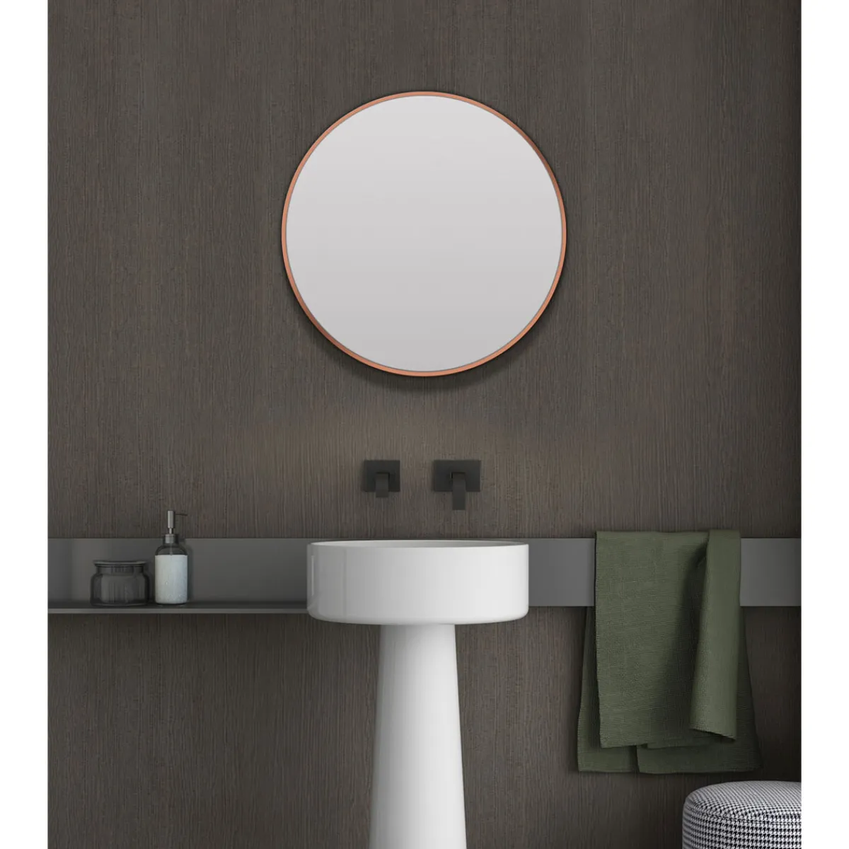 Mit seinem edlen Kupferrahmen und seiner hochwertigen Verarbeitung ist dieser runde Spiegel nicht nur ein optisches Highlight, sondern auch ein praktischer Helfer im Alltag. Ob als Badspiegel oder Dekorationselement – der DSK Design Spiegel Copper Excellent wird Sie begeistern!