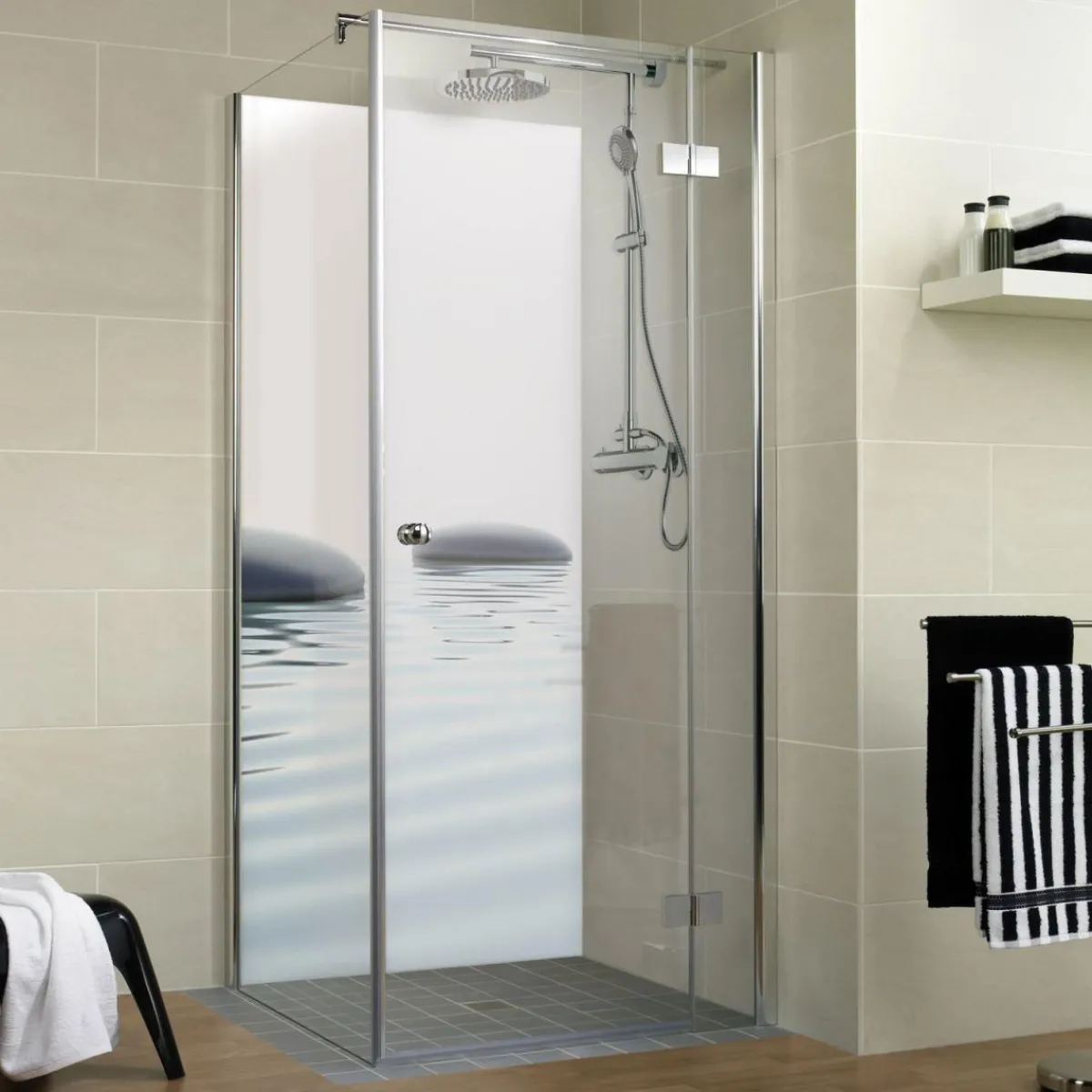 Die fugenlose Duschrückwand mit einem harmonischen Motiv lässt jedes Bad in einem völlig neuen Look erstrahlen. Neben ihrer schönen Optik begeistern die hochwertigen Aluminiumverbundplatten zugleich mit Ihrer widerstandsstarken Beschaffenheit: Die Wandverkleidung ist unempfindlich gegenüber Kratzern, Sonnenlicht und Hitze bis zu 80°C.Darüber hinaus überzeugt das Produkt bereits bei der Montage, welche dank der ausführlichen Anleitung unkompliziert und rasch erledigt ist. Außerdem verursacht die Montage der Wandverkleidung von Schulte kaum Schmutz oder Lärm.Ebenso zeitsparend fällt die alltägliche Reinigung und Pflege der beschichteten Dekorplatten aus. An dieser Stelle profitieren Sie erneut von der fugenlosen Oberfläche, da diese generell schmutzbeständig sowie wasserbeständig ist und sich leicht ohne aggressive Reiniger säubern lässt.