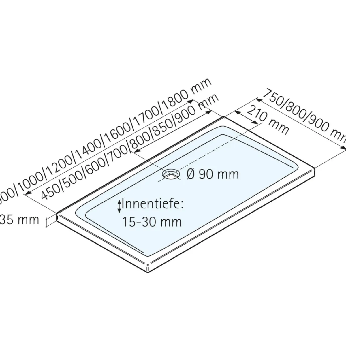 - Duschwannenhöhe: 3,5 cm