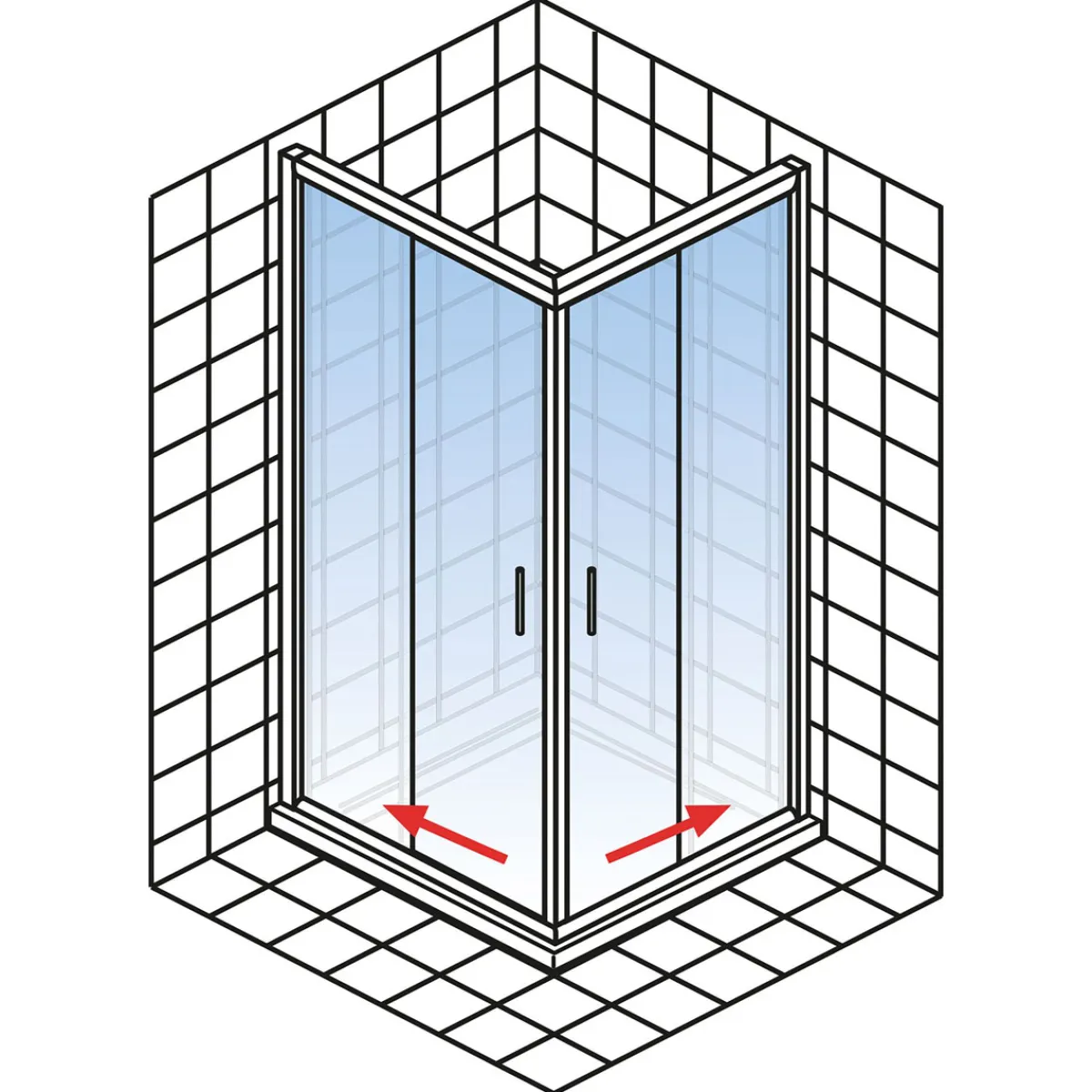 Der vierteilige Eckeinstieg mit Schiebetüren punktet darüber hinaus mit seiner Flexibilität: Je nach Einbausituation haben Sie die Möglichkeit, die Profile individuell anzupassen. Ziehen Sie hierfür einfach die Aluminiumprofile ein Stück weit auseinander, bzw. schieben Sie sie zusammen.
