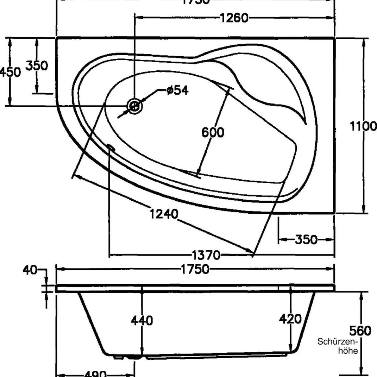 Ottofond Eckwanne Loredana Mod A 1750 x 1100 mm weiß
