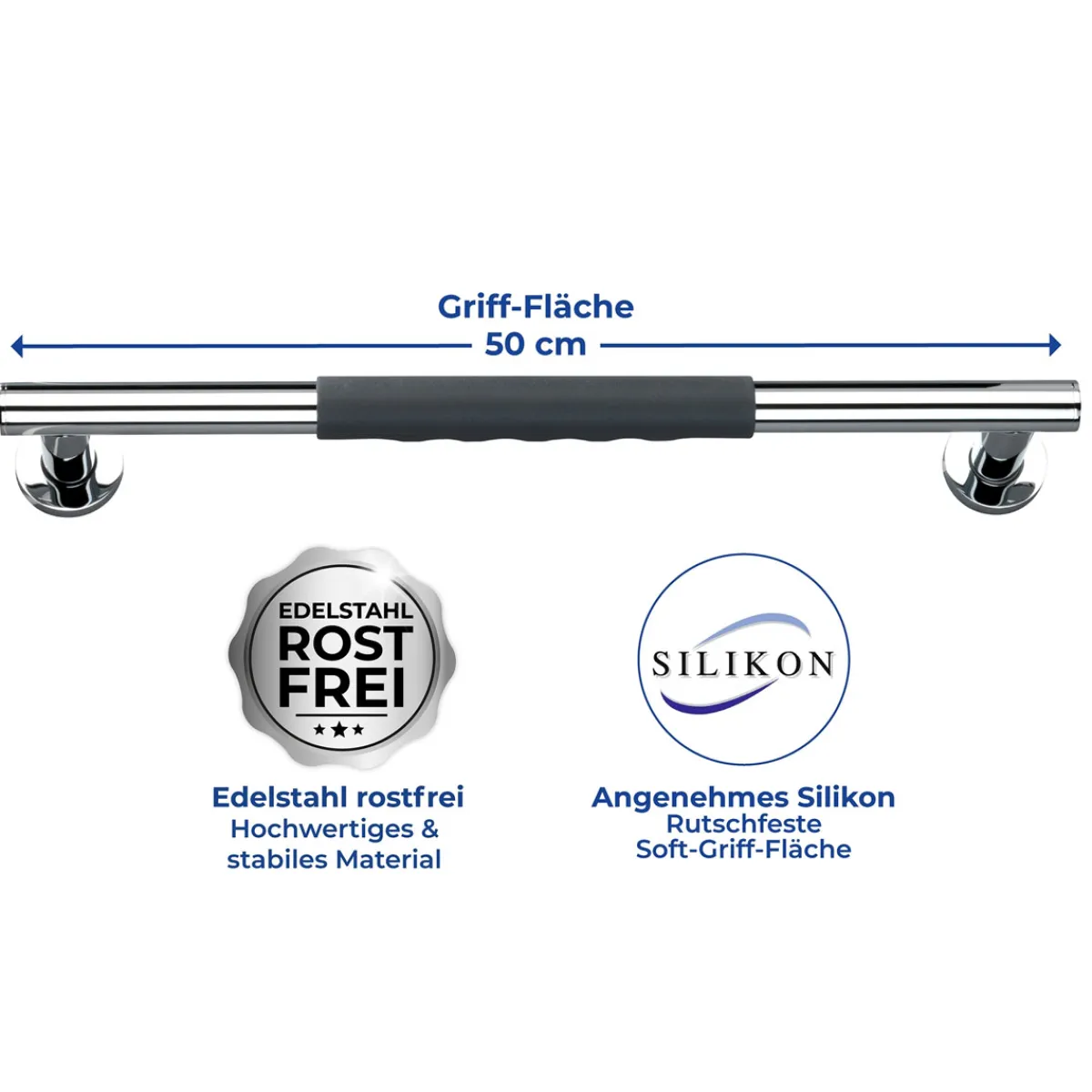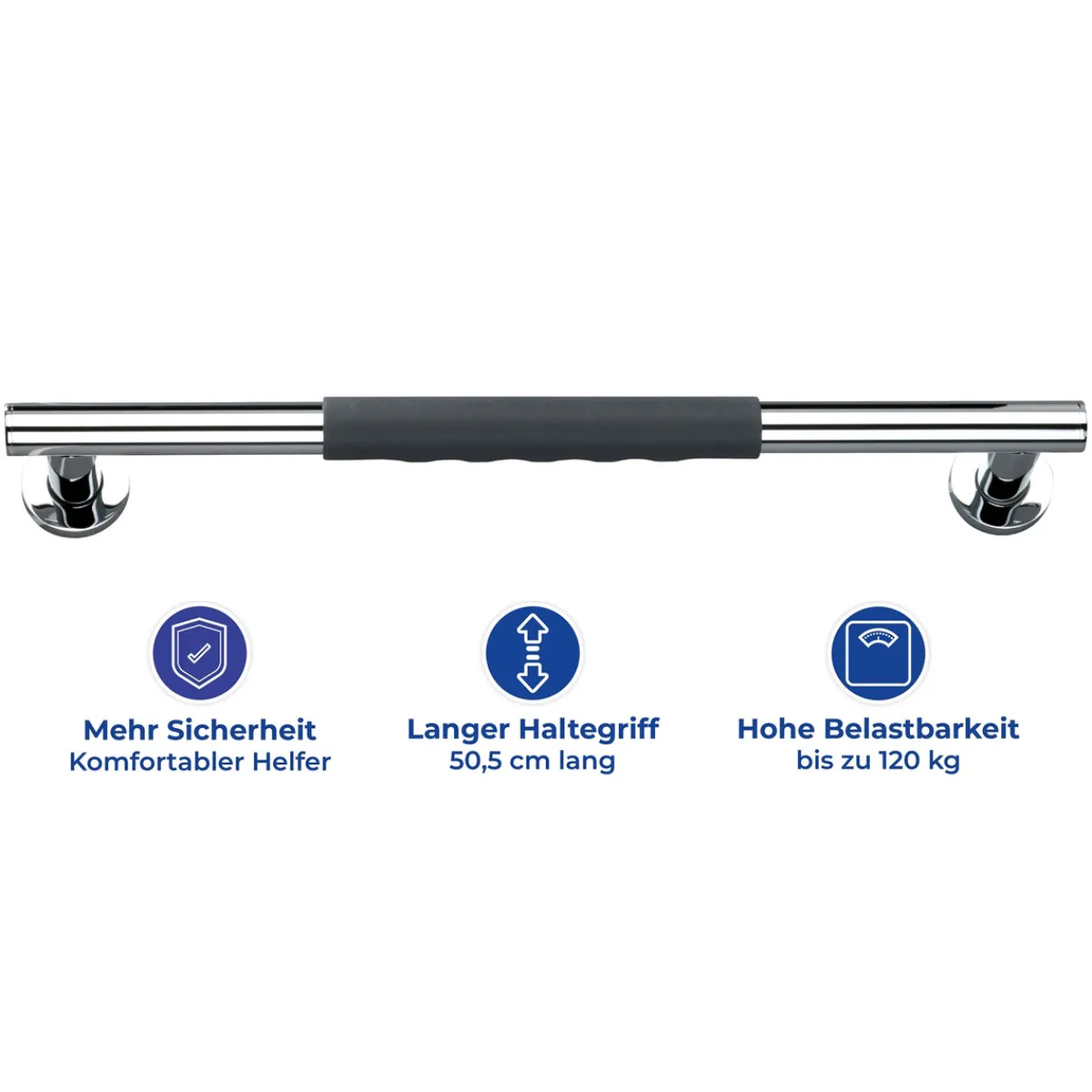 Wer sein Badezimmer sicherer machen möchte, sollte auf den Wenko Edelstahl Wandhaltegriff Secura 50,5 cm setzen. Der Griff bietet eine hohe Belastbarkeit und einen optimalen Halt dank der Silikon-Grifffläche in anthrazit. Mit dem Lieferumfang von Schrauben und Dübeln lässt sich der Haltegriff einfach montieren. Besonders ältere Menschen oder Personen mit körperlichen Einschränkungen profitieren von diesem praktischen Hilfsmittel.