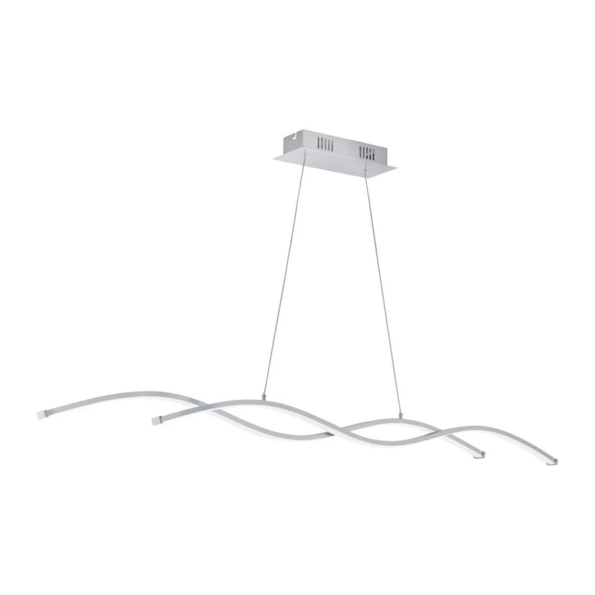 Mit der Eglo LED-Hängeleuchte Lasana 2 setzen Sie ein Statement in Ihrem Zuhause. Das wellenförmige Design in Silber und Chrom verleiht jedem Raum eine moderne Note. Die warmweiße Lichtfarbe schafft eine gemütliche Atmosphäre, während die hohe Lichtleistung von 3800 lm für ausreichend Helligkeit sorgt.