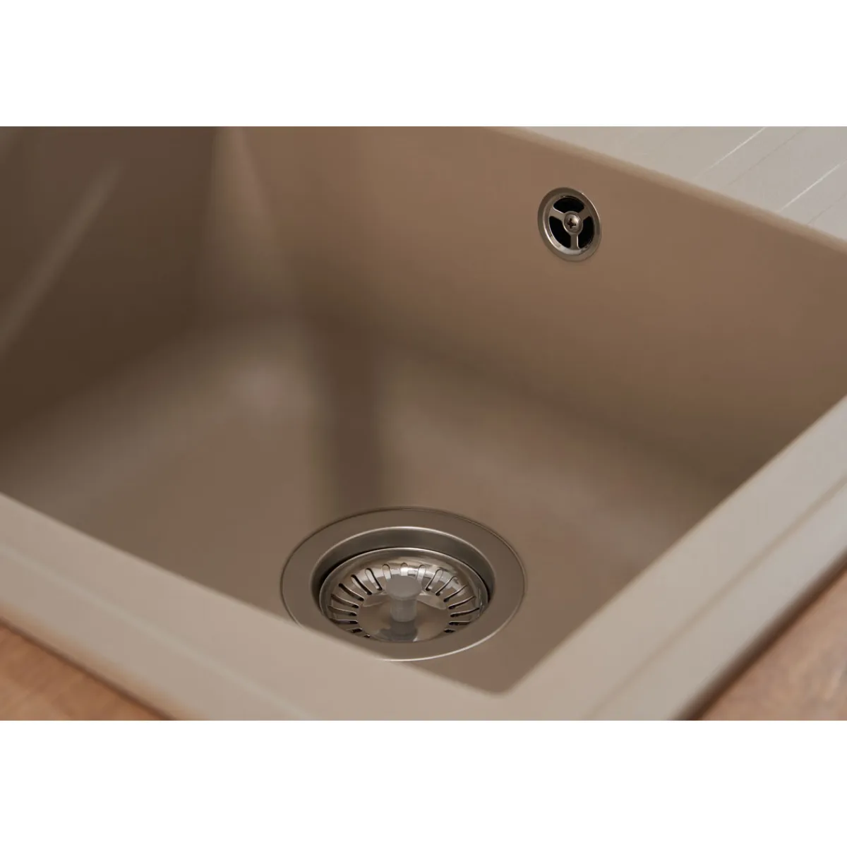 - Inkl. Ab- und Überlaufgarnitur, Siebkorb und Halb-Siphon