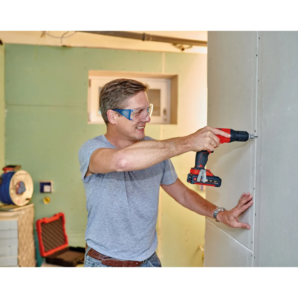 Der Einhell Akku-Trockenbauschrauber TE-DY 18 Li-Solo ist ein kraftvolles und handliches Werkzeug, das sich ideal für den Einsatz im Trockenbau eignet. Mit seiner leistungsstarken Li-Ion-Akkutechnologie und einer maximalen Drehzahl von 4000 U/min ist er der perfekte Begleiter für schnelles und präzises Schrauben. Die LED-Beleuchtung sorgt dabei auch in dunklen Bereichen für eine optimale Sicht.