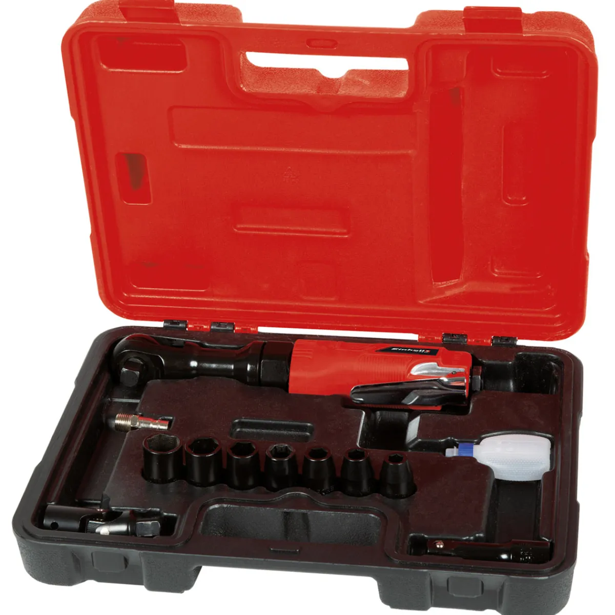 Der Einhell Ratschenschrauber TC-PR 68 ist ein handliches und leistungsstarkes Werkzeug, das sich ideal für schnelle Reparaturen eignet. Mit einer maximalen Drehmoment von 68 Nm und einem Betriebsdruck von bis zu 6,3 bar können Sie mühelos Schrauben lösen oder anziehen. Der Druckluft-Ratschenschrauber wird mit einem umfangreichen Zubehör geliefert und ist somit vielseitig einsetzbar.