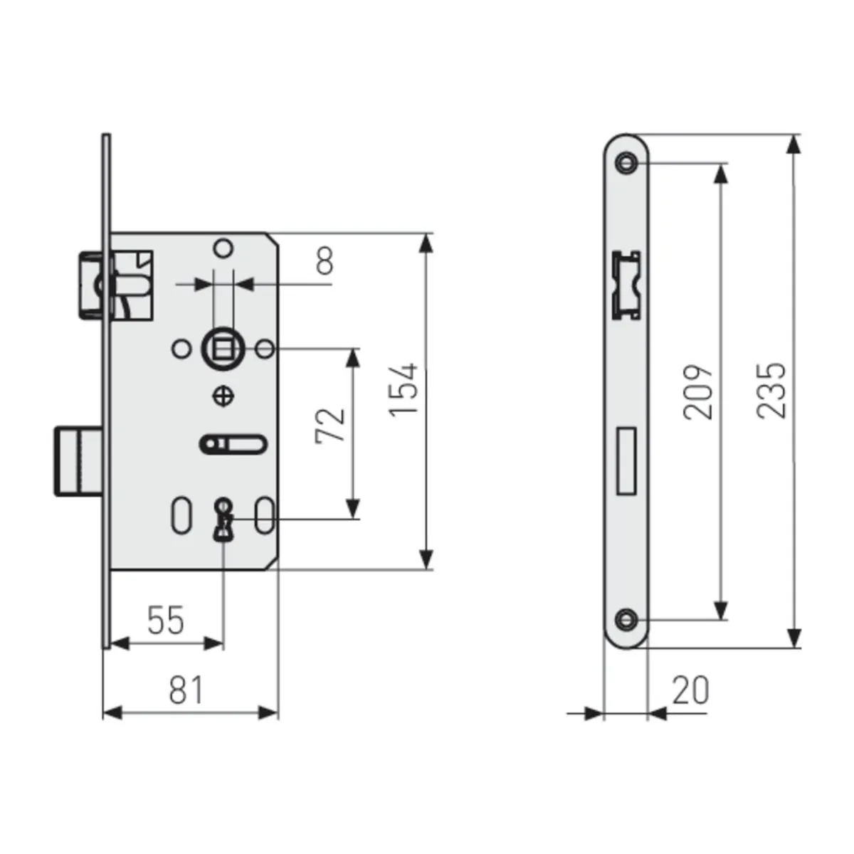 Produktdetails des ABUS Einsteckschlosses ES BB: