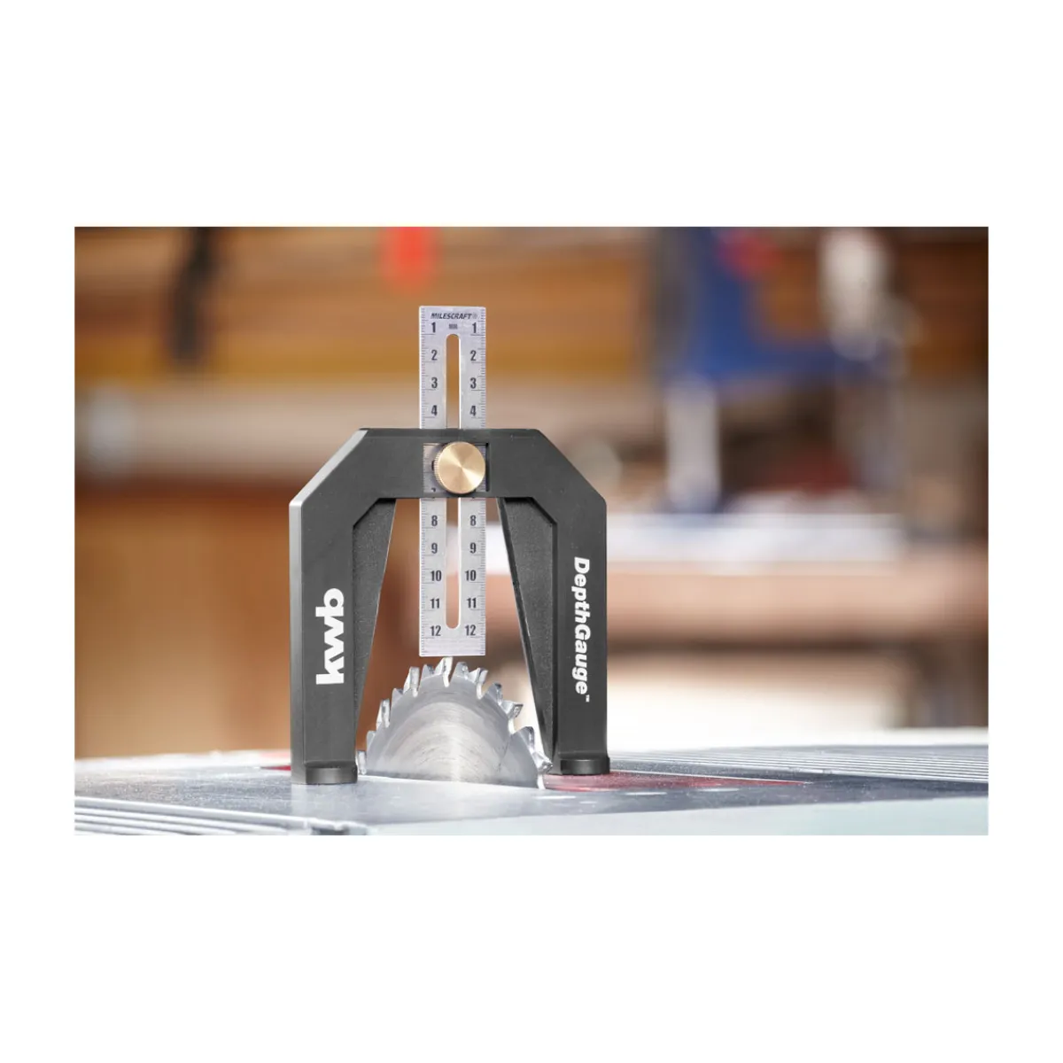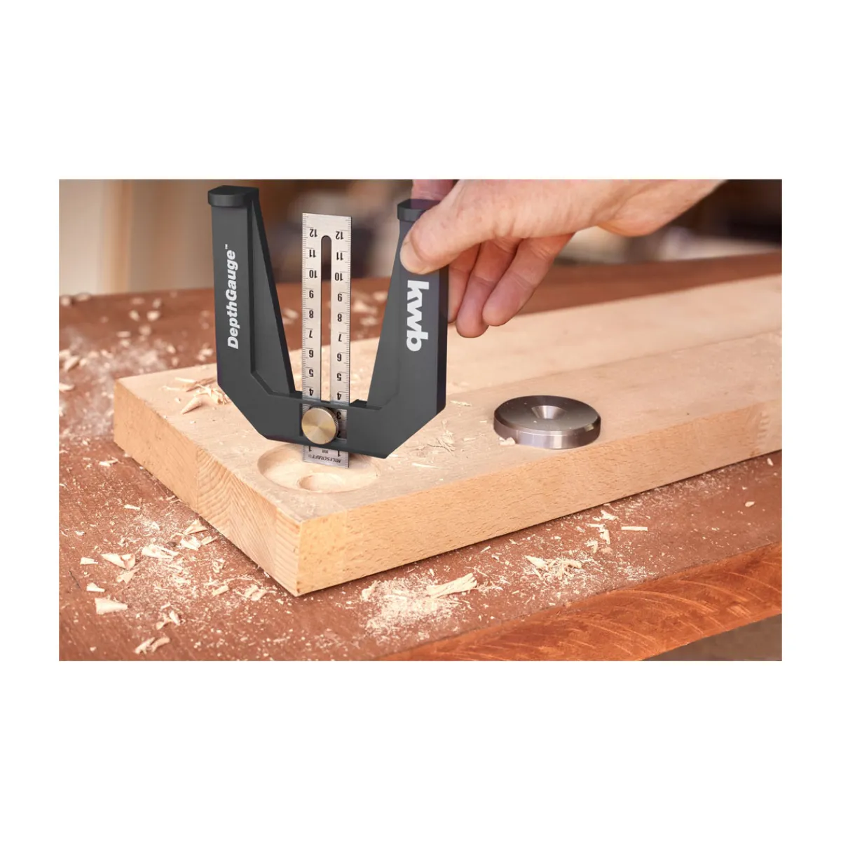 Mit der kwb Einstelllehre wird die präzise Einstellung von Oberfräsen und Tischkreissägen zum Kinderspiel.