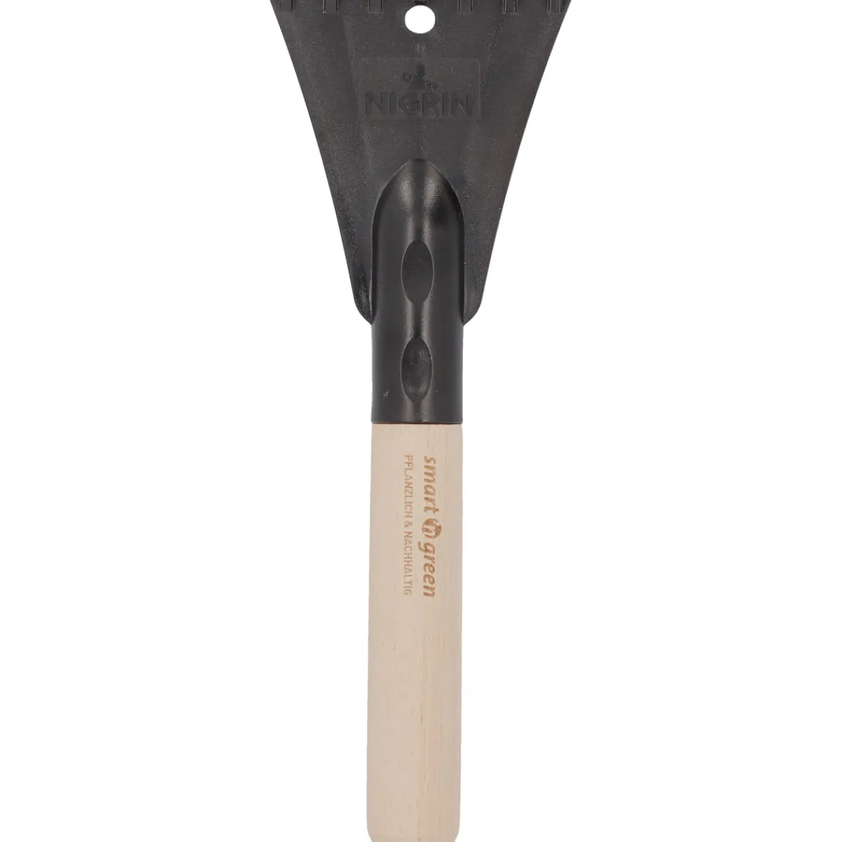 - Auch bei den Materialien des Schabers setzt Nigrin auf Nachhaltigkeit: 30% Stroh und 70% recycelter Kunststoff sorgen für eine umweltschonende Produktion.