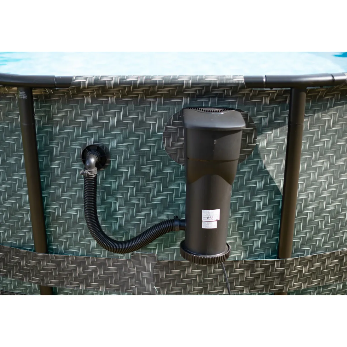 Summer Waves Elite Frame Pool Aufstellpool rund Komplettset Rattanoptik grau Ø 488×122 cm Abkühlung, Erfrischung und Poolspaß ohne Ende — klingt das nicht hervorragend? Der Elite Frame Pool von Summer Waves punktet mit umfangreicher Ausstattung und zuverlässiger Qualität. Verwandele deinen Garten mit dem runden Aufstellpool und wenig Aufwand in eine sommerliche Badeoase! Schneller Aufbau und Poolspaß pur mit deinem Komplettset! Durch das innovative Snap-in System ist der Pool im Nu aufgebaut. Die hochwertigen Rahmenrohre aus Metall gewährleisten in Verbindung mit der strapazierfähigen Poolfolie aus einem 3-lagigen PVC-Polyester-Mix eine hohe Widerstandsfähigkeit und Stabilität. Die Highlights auf einen Blick: * Komplettset mit exklusivem Zubehör! * Robuste Poolkonstruktion für langanhaltenden Badespaß * Maximale Stabilität durch massive Stahlrohr-Konstruktion * Hohe Belastbarkeit dank 3-lagiger PVC-Polyester-Mix Folie * Schneller und einfacher Aufbau durch Snap-in Verfahren * Füllmenge bei 90 %: 19.858 Liter Platz für ca. 7 Personen * Zeitloses Design in Rattanoptik kombiniert mit Mosaikmuster Maximale Sauberkeit dank zuverlässiger Technologie! Die mitgelieferte SkimmerPlus 2-in-1 Filterpumpe reinigt das Wasser effektiv und sorgt für klare Verhältnisse. Oberflächenablagerungen werden kontinuierlich durch die Abschöpftechnologie entfernt, sodass du den ganzen Sommer über kristallklares Wasser genießen kannst. Im Lieferumfang enthalten: * SkimmerPlus Filterpumpe mit Filterpatrone * Einstiegsleiter * Abdeckplane und Bodenvlies * Deluxe-Reinigungsset Erlebe maximalen Badespaß, erfrischende Abkühlung und unvergessliche Sommermomente mit dem Summer Waves Elite Frame Pool!