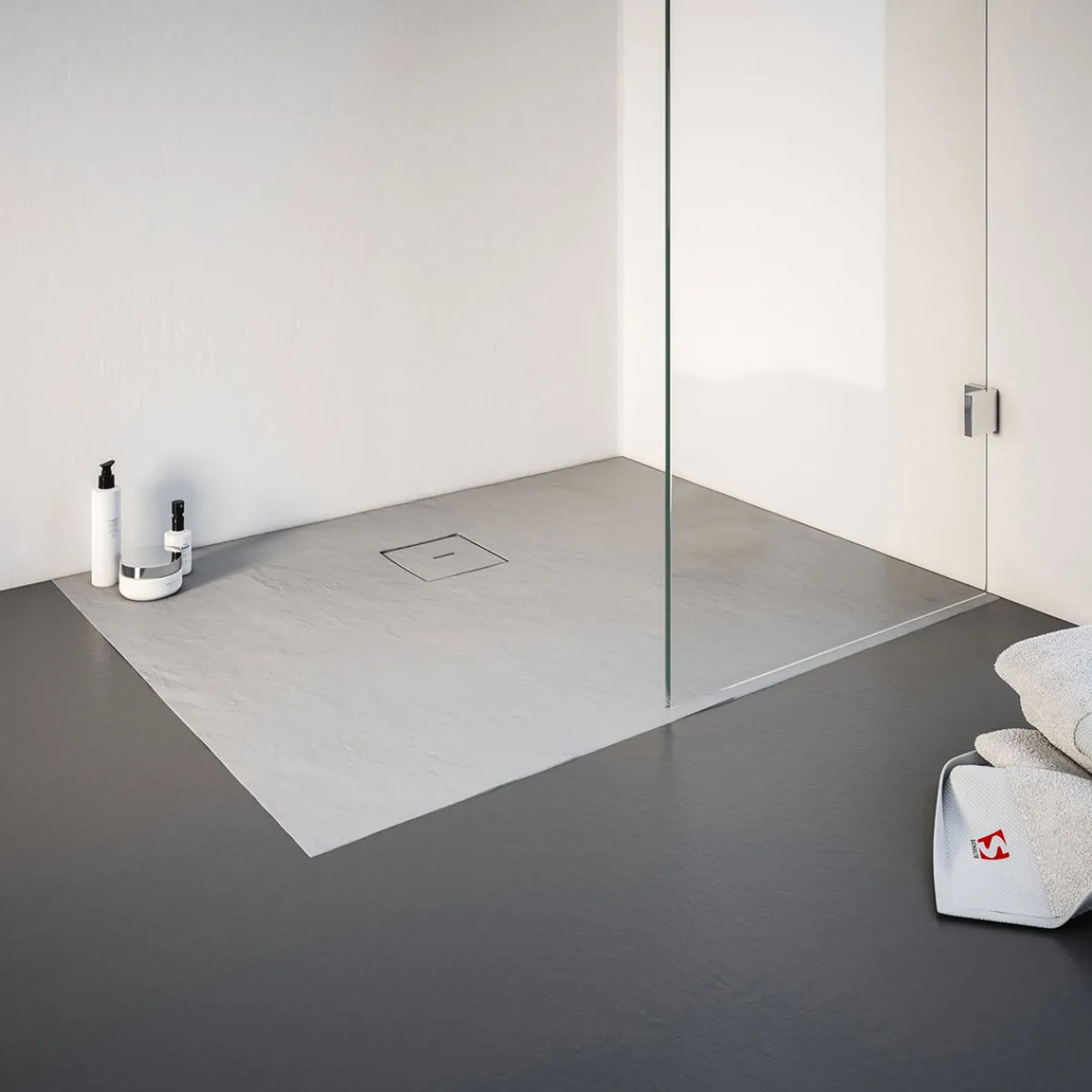 - Hochwertige Duschwanne aus Mineralguss mit Steinstruktur in Grau (117)