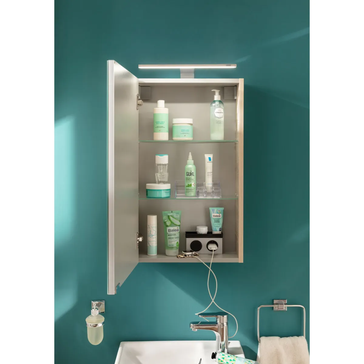 Dieser Spiegelschrank ist ideal für Kunden geeignet, die ihr Gäste-WC funktional und stilvoll einrichten möchten.