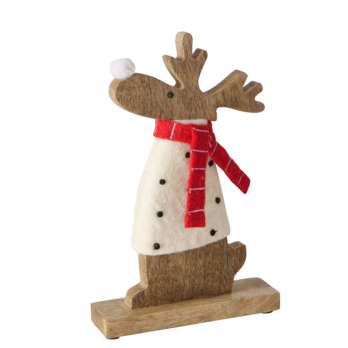 Lassen Sie sich von der Figur Irschel sortiert Hirsch in cremeweiß und rot verzaubern! Diese liebevoll gestaltete Deko-Figur bringt winterlichen Charme direkt in Ihr Zuhause. Mit ihren Maßen von 15 x 4,5 x 25 cm ist sie ein echter Blickfang auf jedem Sideboard, Fensterbrett oder als Teil Ihrer festlichen Tischdekoration. Die Kombination aus Textil und Holz sorgt für eine besonders warme Ausstrahlung und macht die Figur zu einem echten Lieblingsstück für die kalte Jahreszeit. Ob als Einzelstück oder im Arrangement mit weiteren Dekoelementen – der Hirsch setzt stilvolle Akzente und schafft eine gemütliche Atmosphäre. Gerade zur Weihnachtszeit oder während der gesamten Wintermonate wird diese Figur zum Highlight Ihres Wohnraums. Lassen Sie sich inspirieren und holen Sie sich ein Stück winterlicher Gemütlichkeit nach Hause!